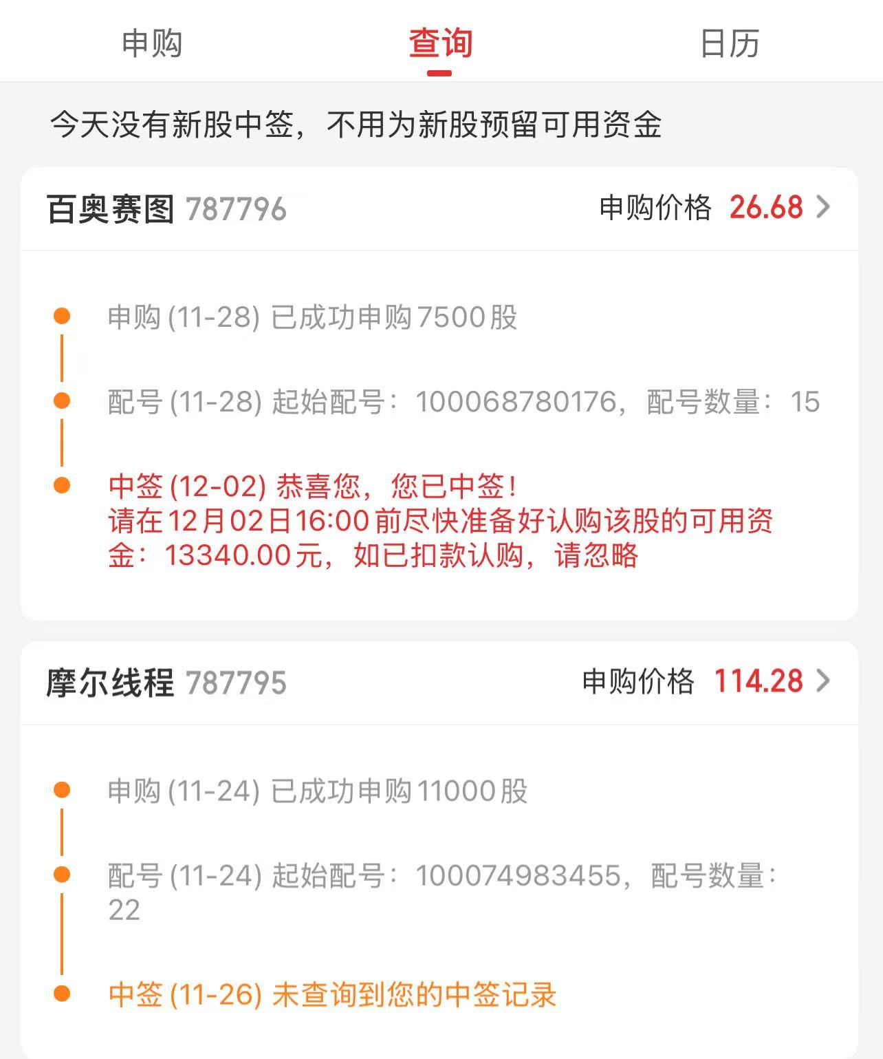 今天居然中了个新股,运气不错。有两三年没中过新股了,上次摩尔线程大肉签满怀期待,最后也是无缘。这个百奥打新压根就没多想,今天扫了一眼,发现持仓居然多了只股票。看看能不能挣个2万。