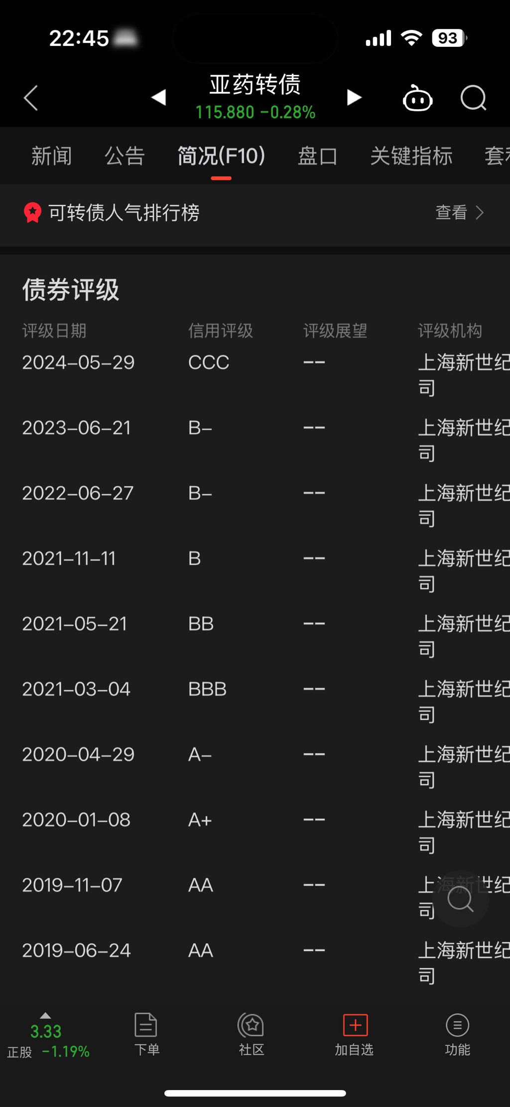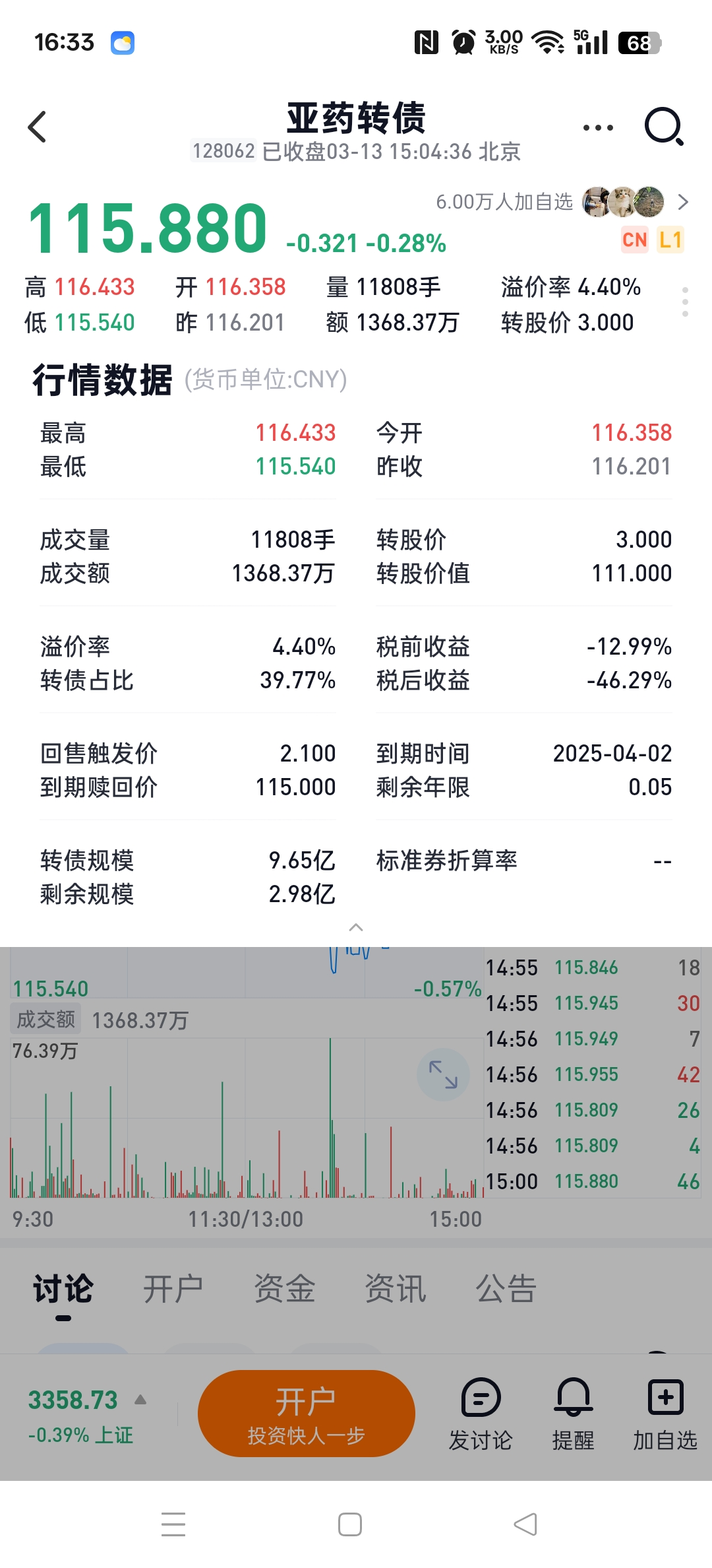 请教一下,现在还在纠缠亚药转债是图什么? 如果预期亚药转债会涨,大概率是跟涨正股。因为是临期债,期权价值即将归零,目前还有+4%的溢价率,转债的涨幅基本上会低于正股涨幅,溢价率会收窄,直至为负,所以应该买正股更划算。并不是推荐正股,实际上对正股根本没兴趣。只是好奇想知道为什么还有关注这样的临期债的。这个转债在过去一个月几乎天天新低。很好奇到底是谁在持有,交易这样的转债?因为赌人性,亚药大股东花了不少钱接过来的,现在公司账上的6个亿就是转债骗回来的,不继续化债要还3个亿!明明都已进袋了叫宁波富邦吐出来,不现实。所以即使它还钱对股价也没有抛压,最多亏个一两点。一但大股东想化债那就是一个涨停板,这种有性价比的博亦不值得做么?我allin!!
