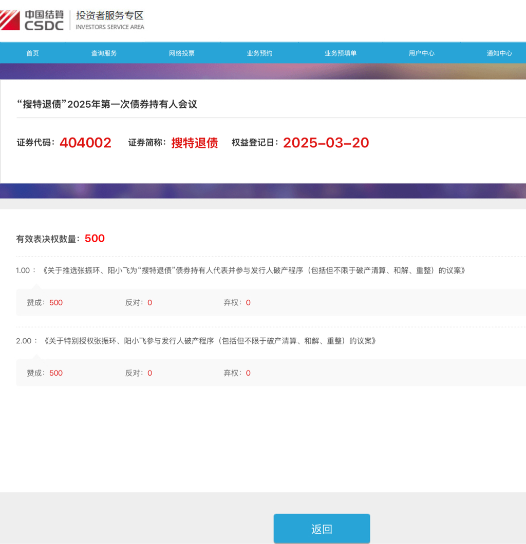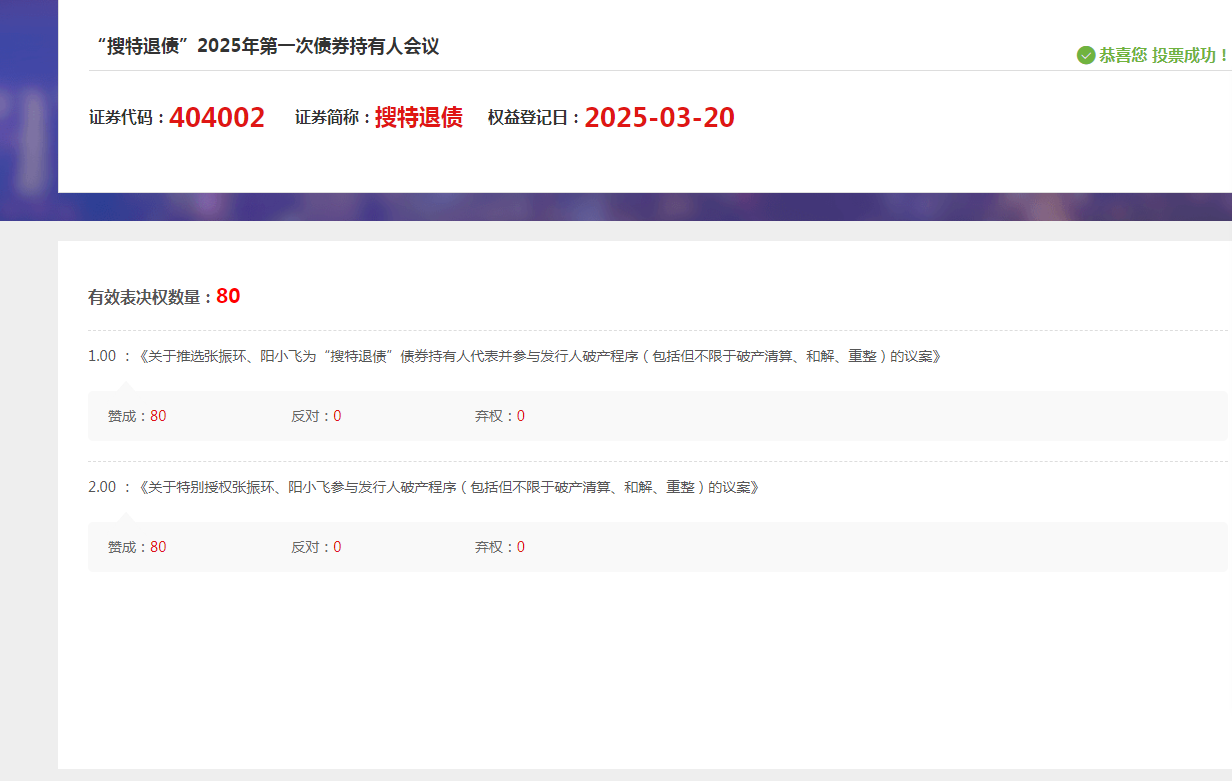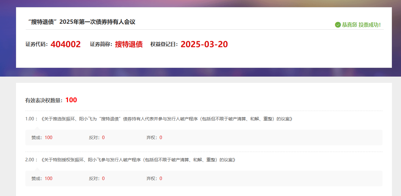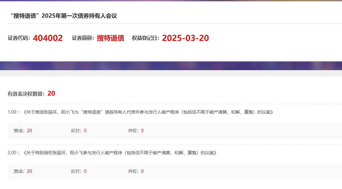 一旦大家团结起来,以后不可能再被 一债会投票这种 “会议须知”的“默认推定”、强煎民义!对后面破产清算中搜特转债3.5万持有人集体维权有重大帮助!