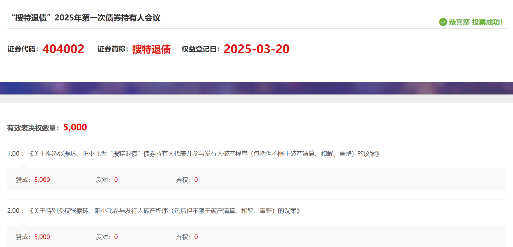 一旦大家团结起来,以后不可能再被 一债会投票这种 “会议须知”的“默认推定”、强煎民义!对后面破产清算中搜特转债3.5万持有人集体维权有重大帮助!
