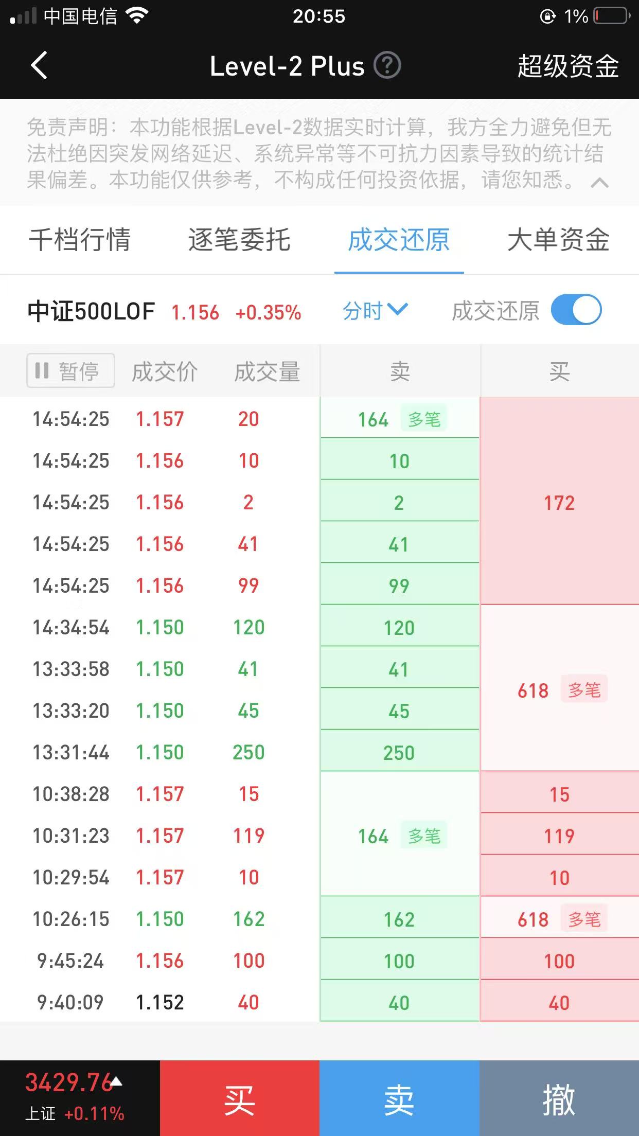 你看到的是一笔172的量,按你所述,那时应该还有低于1.157的卖单152,所以先你成交