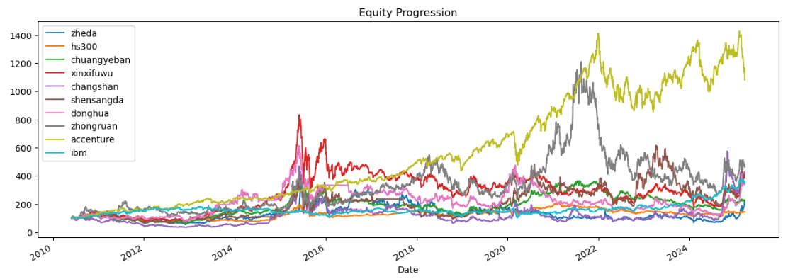 做下回测,选取宽基指数、行业指数、行业内全球对标公司作为一个投资组合进行回溯。