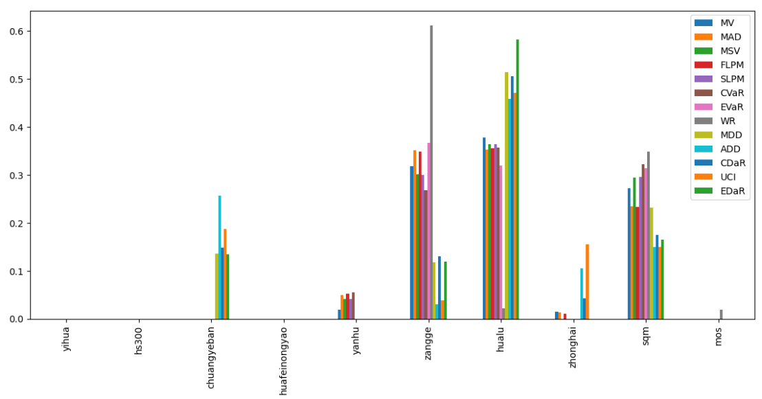 如果换成其他约束,系统给的配置比例也大同小异,基本是在华鲁恒升和美股的智利矿业化工之间做取舍了。(注:占比越高越好)