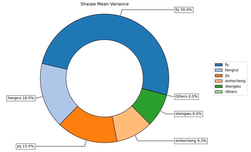 按最高夏普比率配置的话,系统给的权重为16.5%,最大权重给了美股的礼来占比50.4%。(注:占比越高越好)