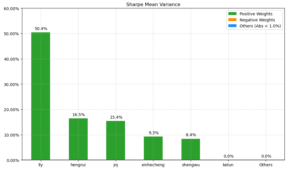 如果换成其他约束,系统给的配置比例也大同小异,基本是在公司和美股的礼来之间做取舍了。(注:占比越高越好)