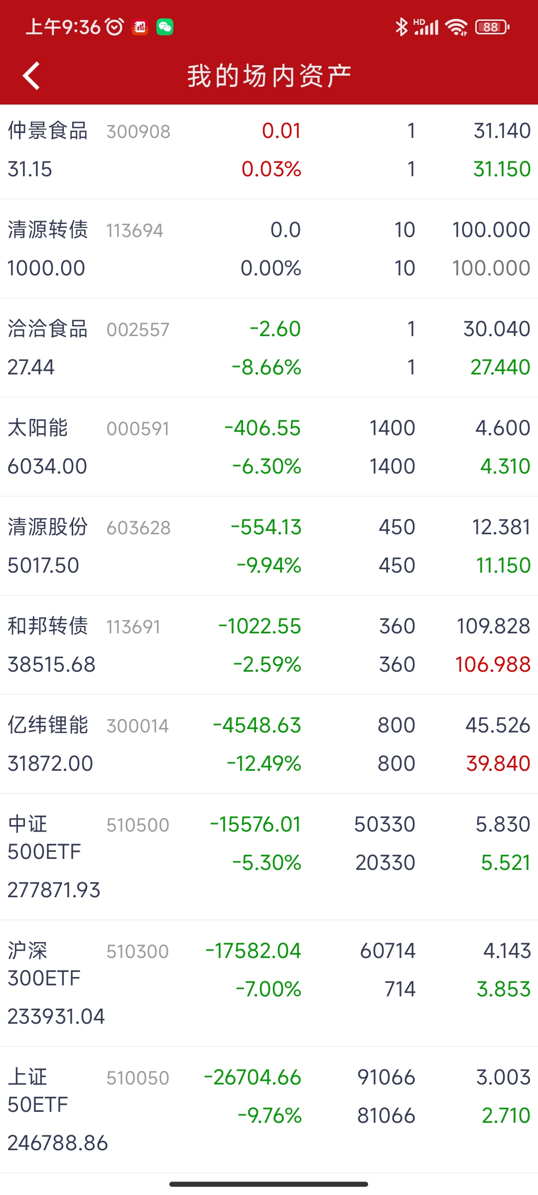 太能110出,盈利120元,正股浮亏中。中了几个亏钱股,不敢再配了,原以为牛市来了,一鱼两吃,接货赢小头亏大头!正股微亏时候不舍得割,现在亏损更多了