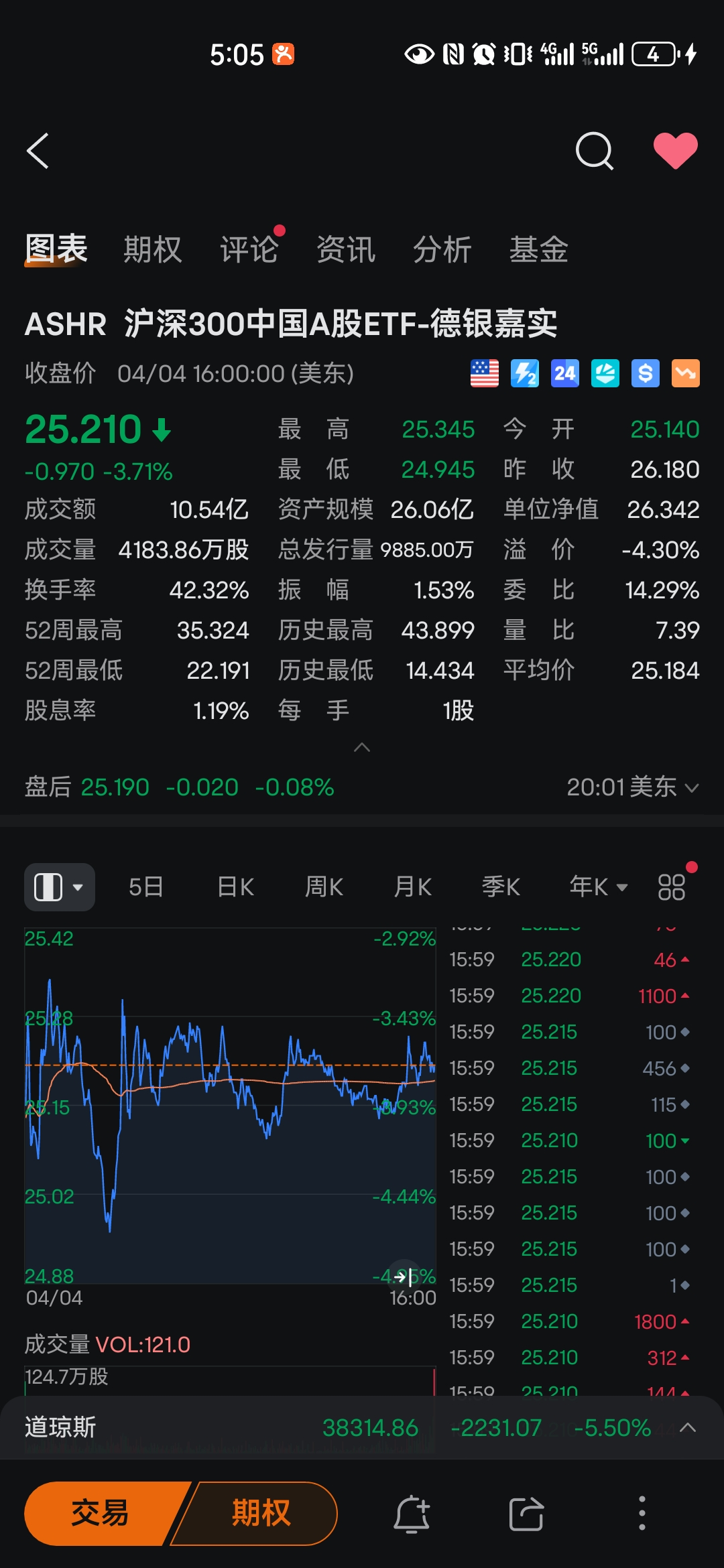 周5晚上美股收盘时,美股上的跟踪沪深300的基金跌了4%,买了点,赌周一大A沪深300跌不到4%!