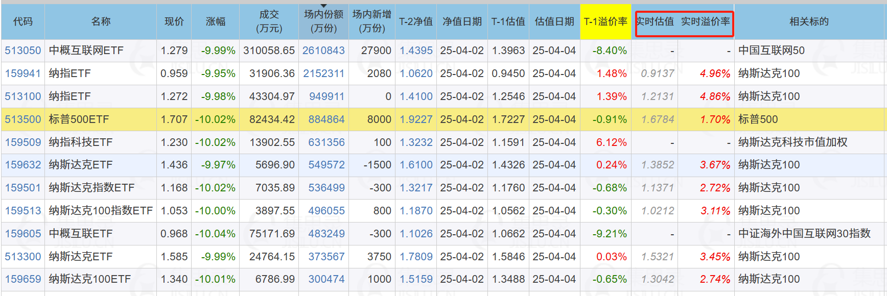 如题,表格里的实时溢价率是根据美股夜盘数据吗?T-1是根据收盘价吗?