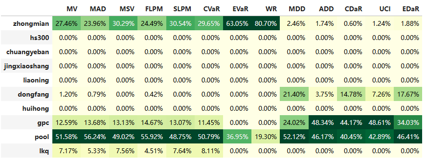 有效边界也差不多,公司始终占有一席之地。(注:占比越高越好)