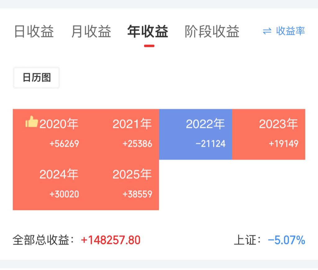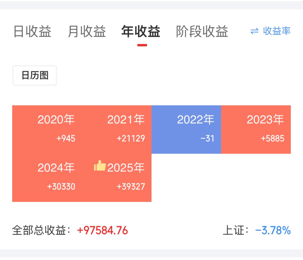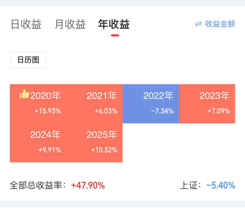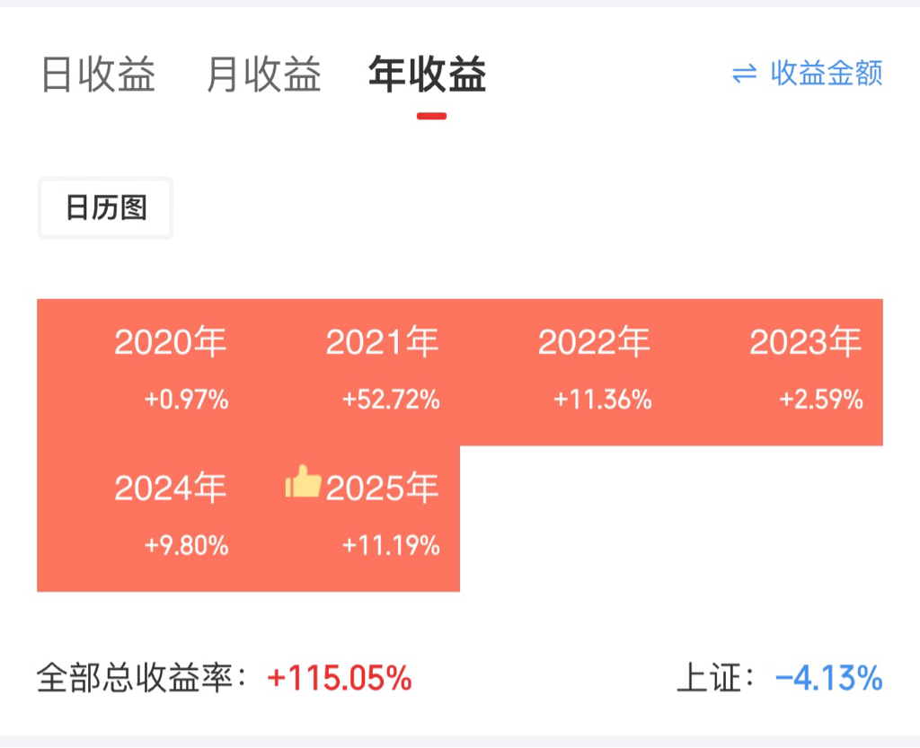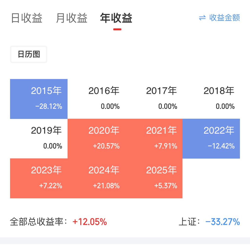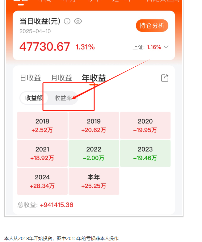 看年度收益就这样显示,不知道能不能显示收益率