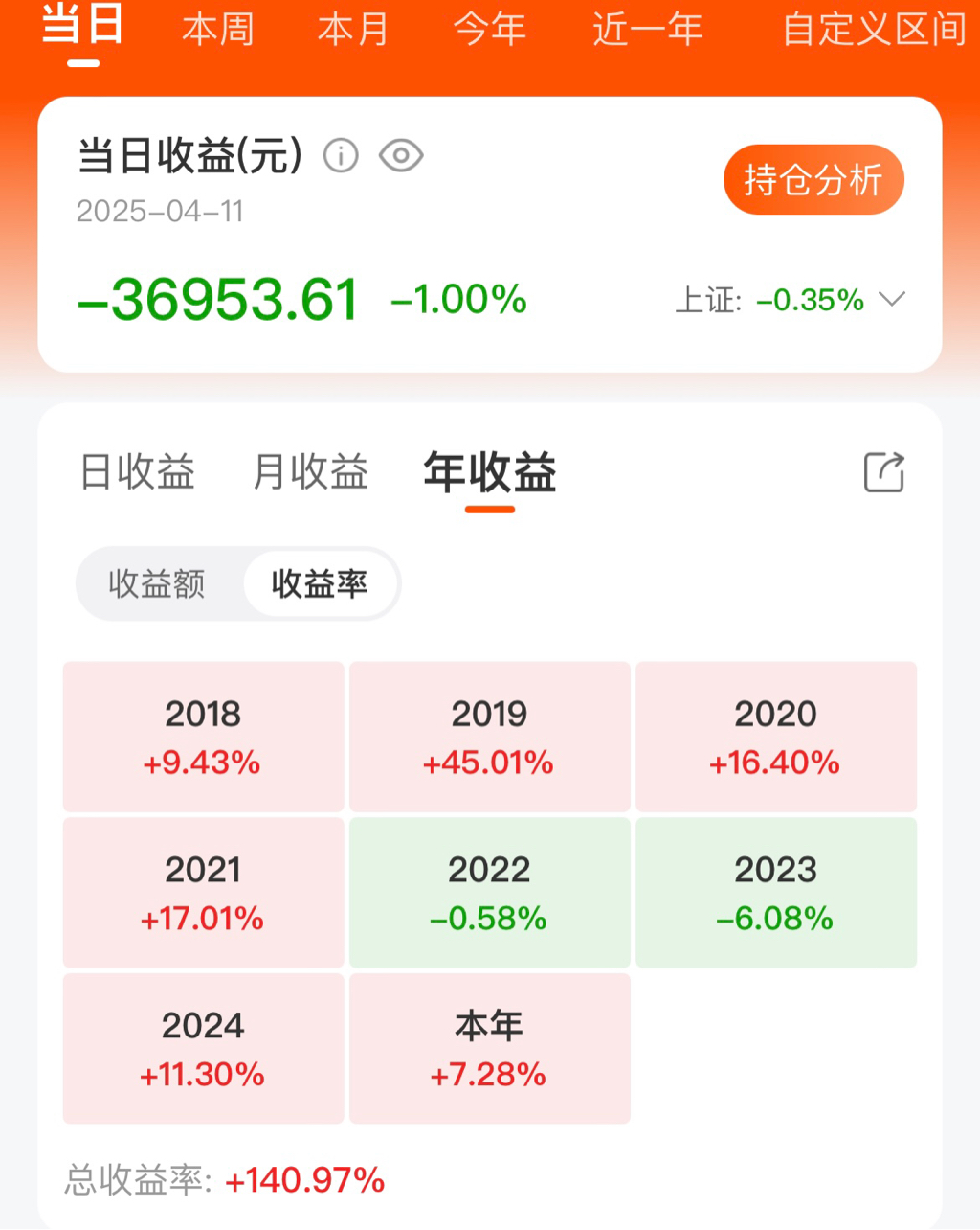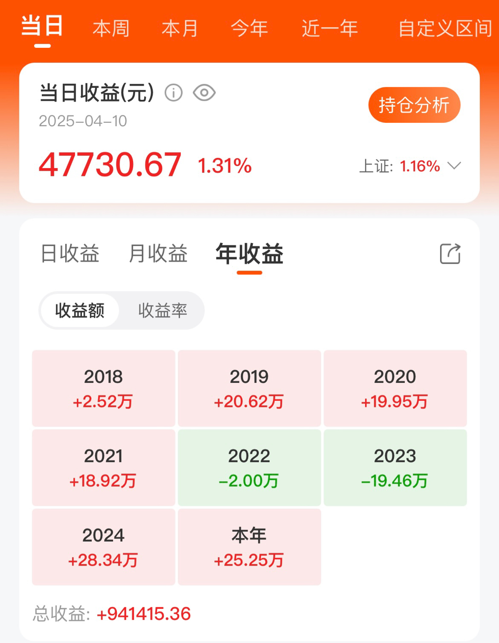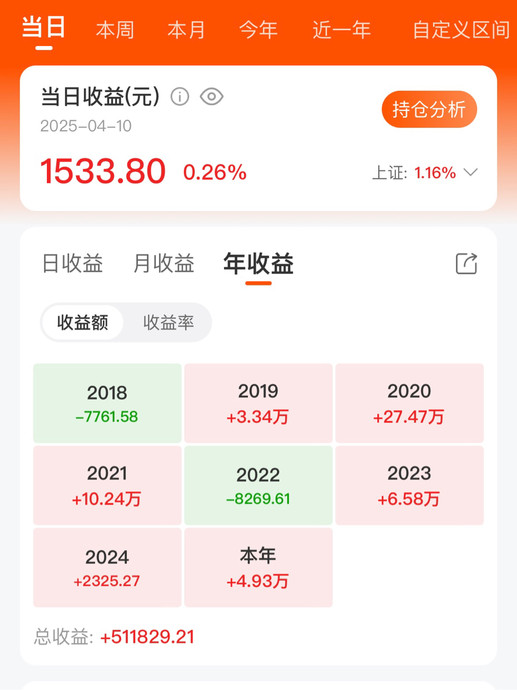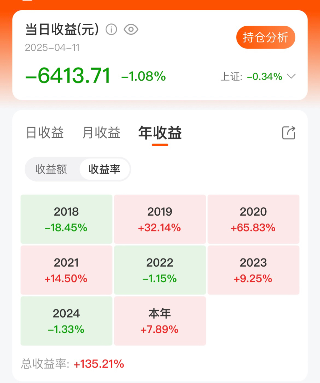 看年度收益就这样显示,不知道能不能显示收益率