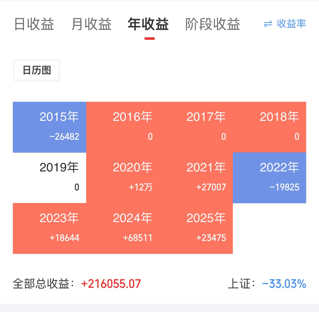 本人从2018年开始投资,图中2015年的亏损非本人操作