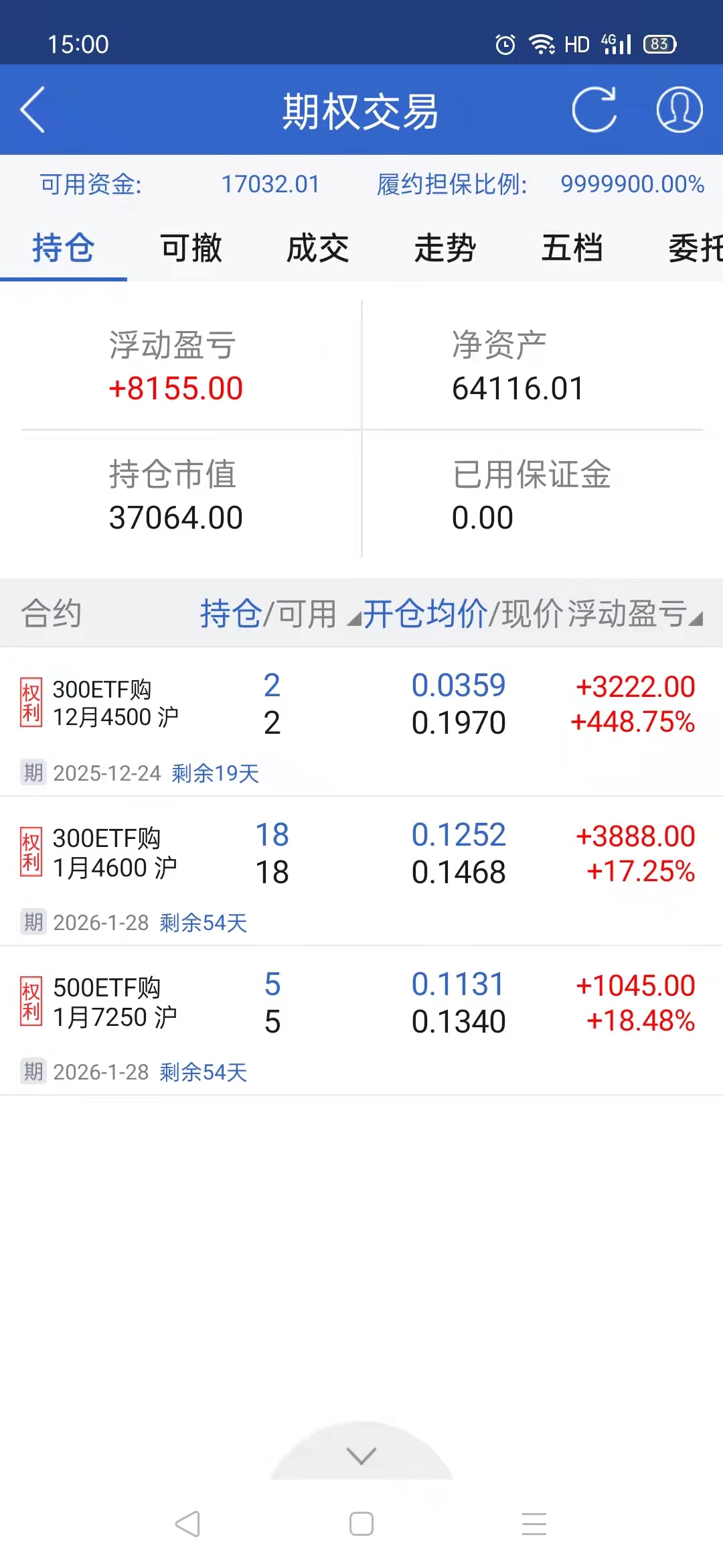老持仓买涨的那1张是12月到期的,前面买涨清仓时也说过留这1张,是为了防止自己对看震荡走眼的防守仓位。