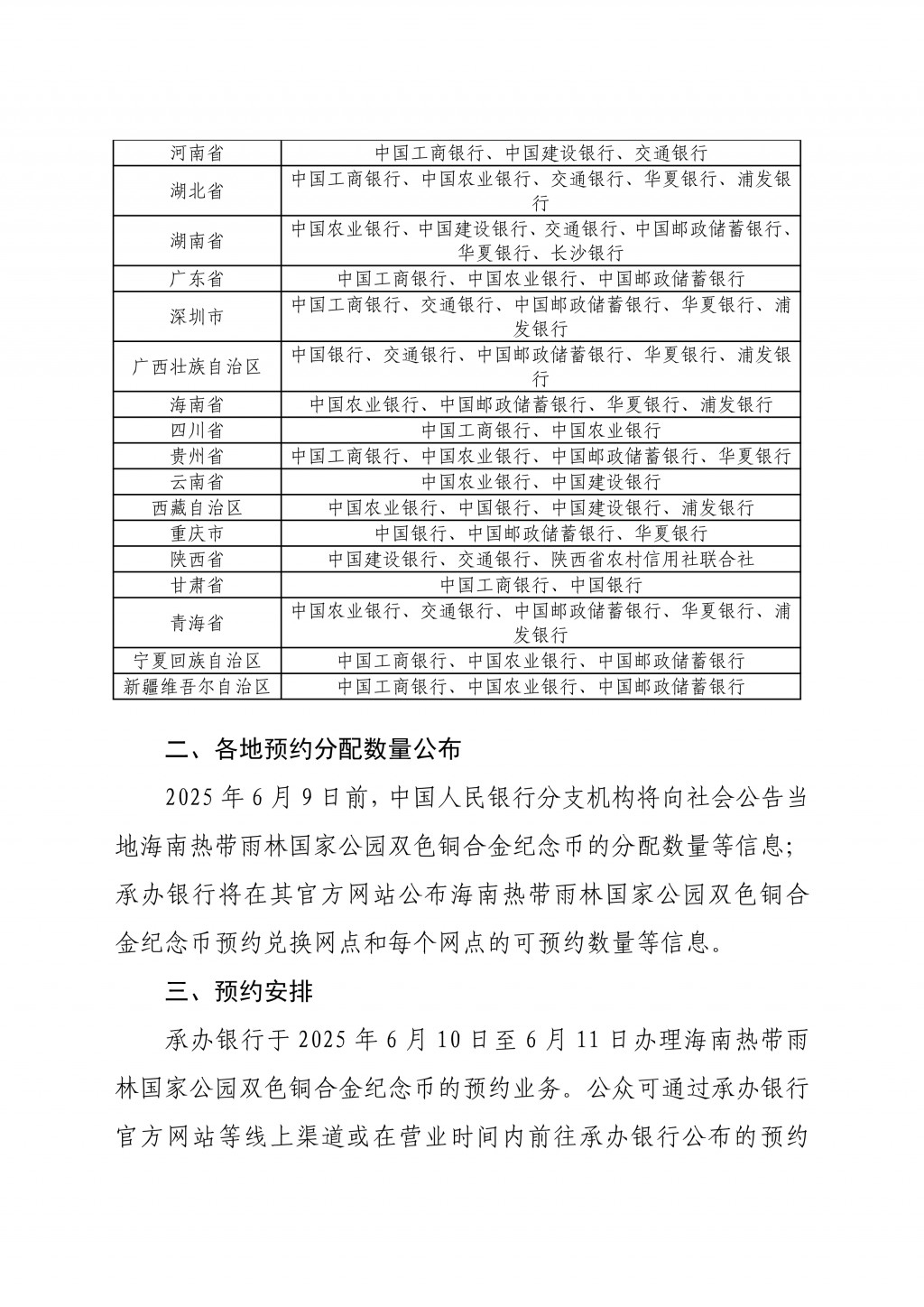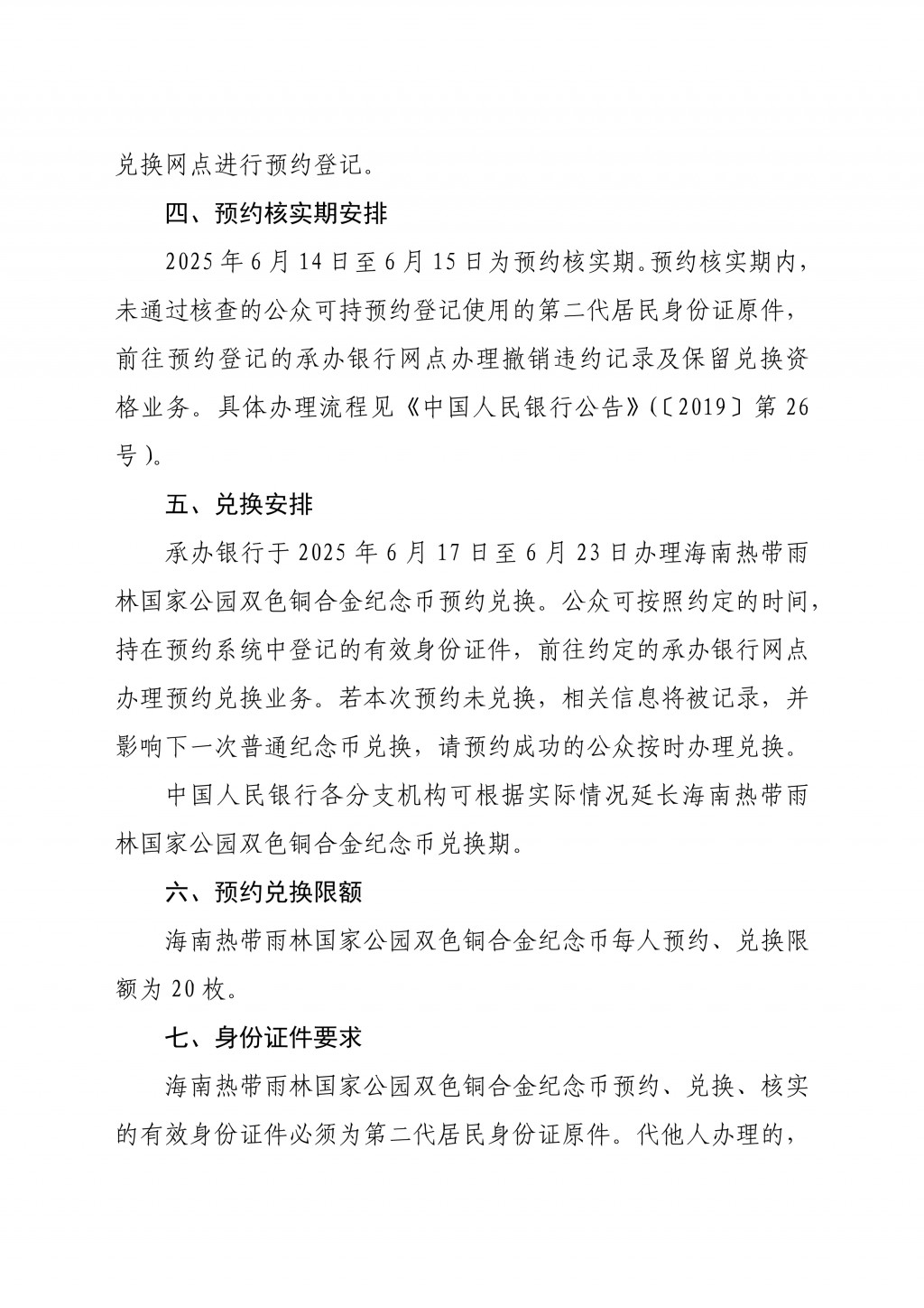 海南热带雨林国家公园双色铜合金纪念币采取预约兑换方式发行。具体工作安排见附件3。