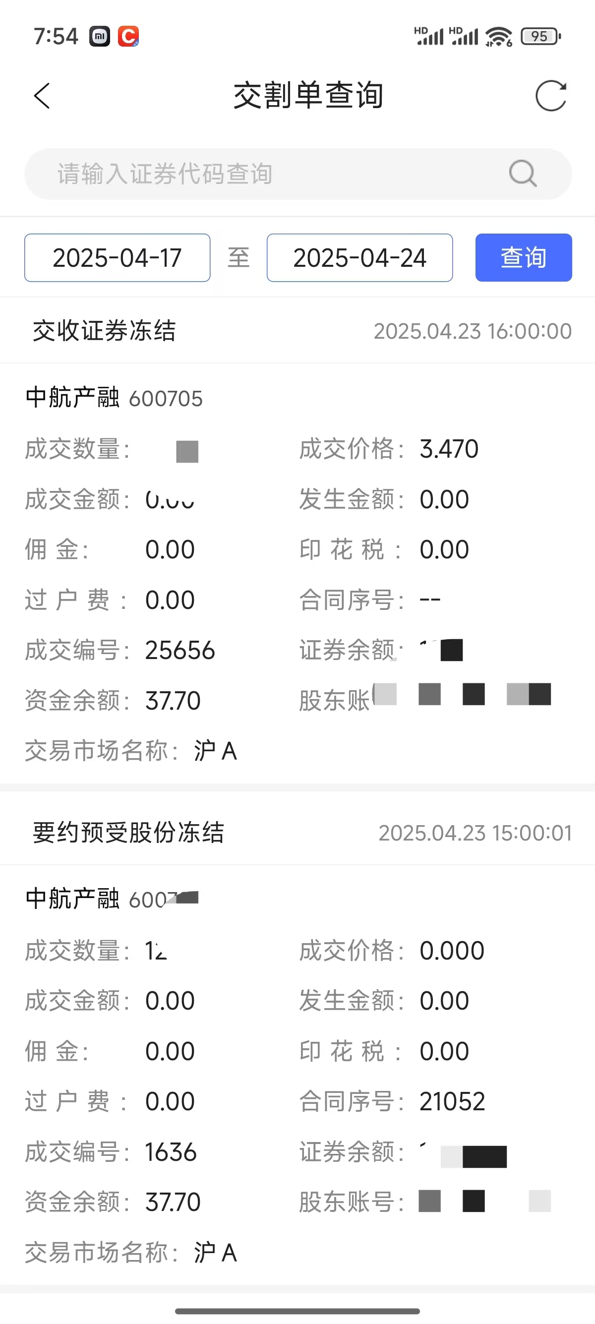 这券商系统有点烂,唯一能确定的就是目前是被冻结状态。算成功了吗?