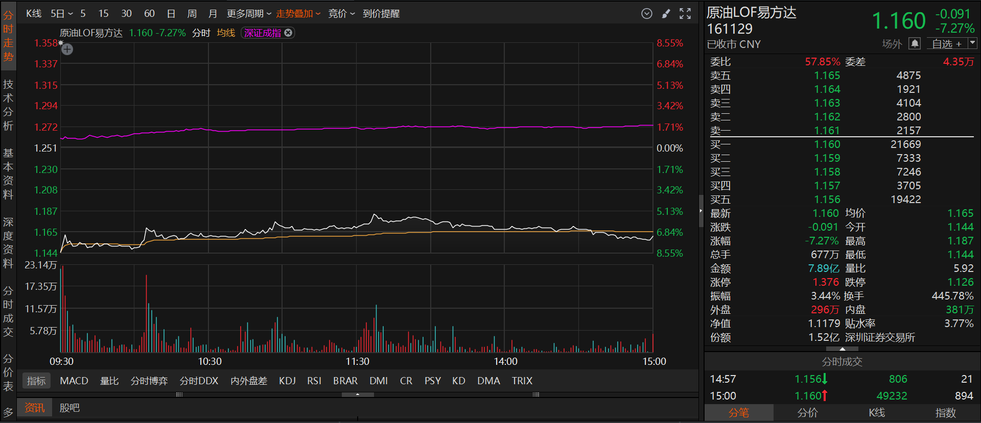 2025年5月6日,原油LOF易方达成交量677万手,成交额7.89亿元。