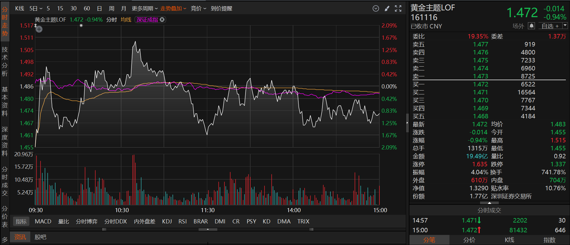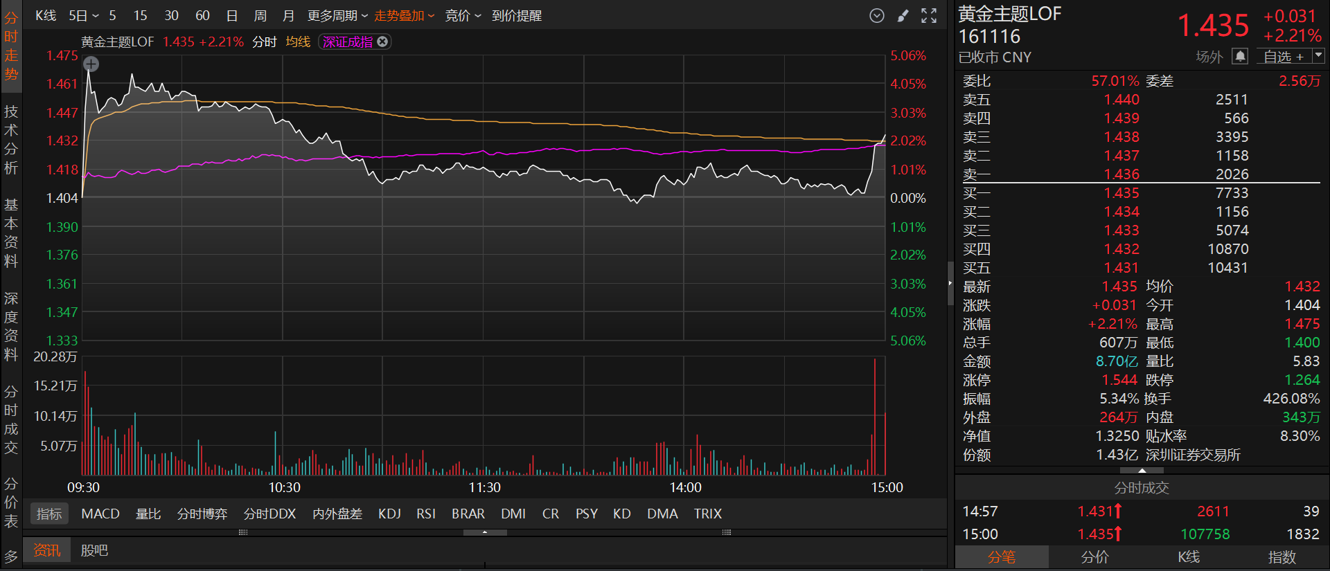 2025年5月6日,黄金主题LOF成交量607万手,成交额8.70亿元。