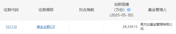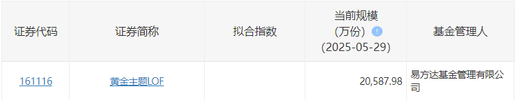 2025年4月28日,黄金主题LOF场内规模11,631.09万份,新增3,375.46万份,相当于7万辆拖拉机申购。