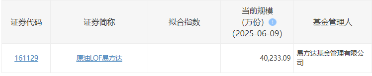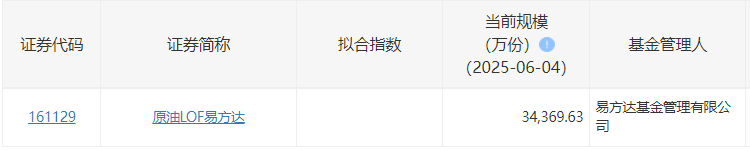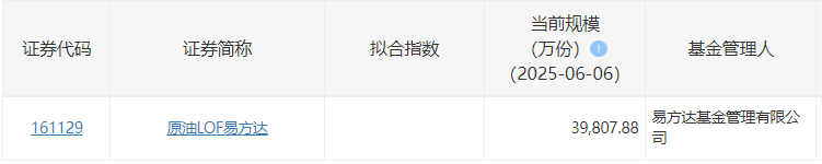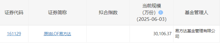 2025年6月5日,原油LOF易方达场内规模38,649.92万份,新增4280万份,相当于8.2万辆拖拉机申购。
