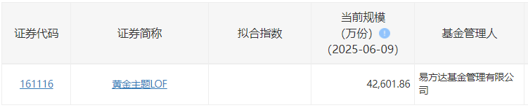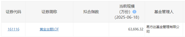 2025年6月5日,黄金主题LOF场内规模33,362.57万份,新增4789万份,相当于10.6万辆拖拉机申购。