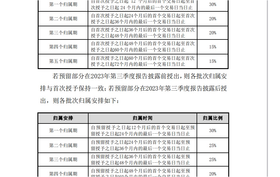 某股票2023年限制性股票激励计划激励对象授予预留限制性股票的公告,授予日和三季度公告日为同一日,那么预留部分各批次授出安排到底应该遵循哪个呢?既不前,也不后呀。