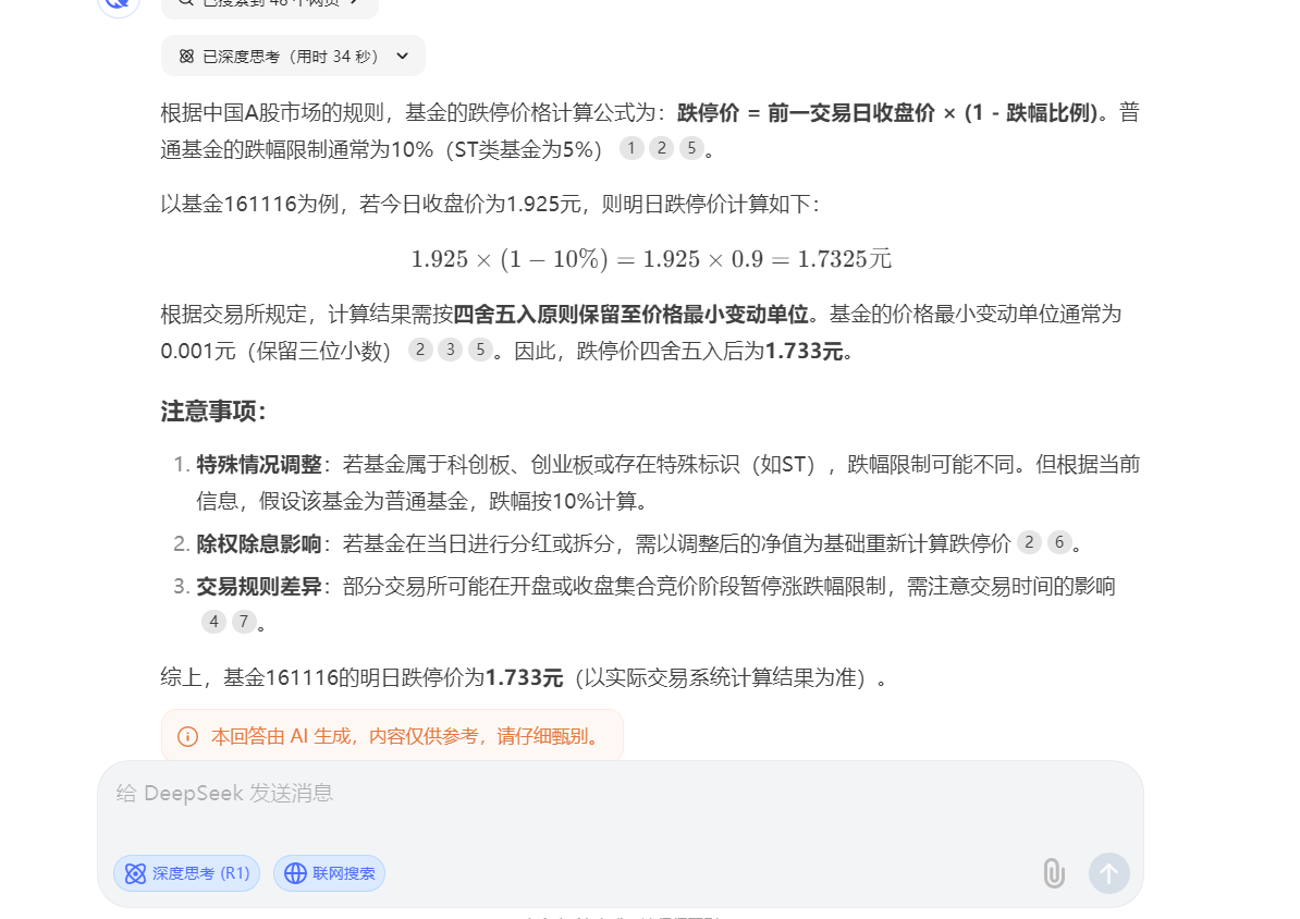 161116挂跌停价 deepseek怎么得出1.73的价格?