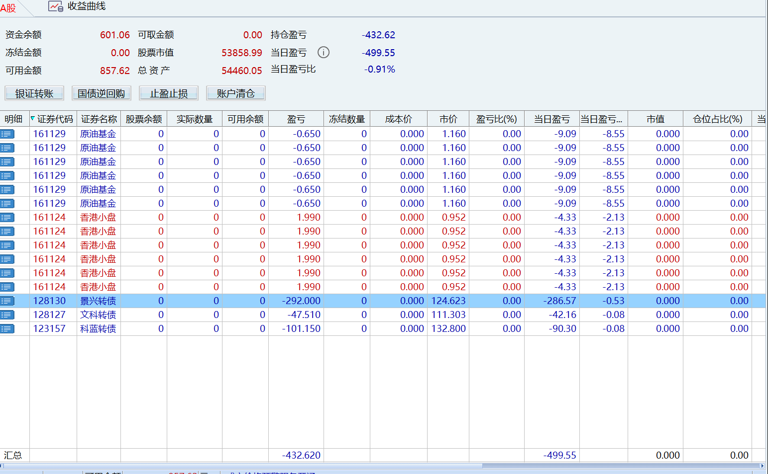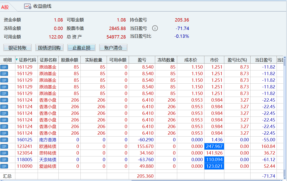 今天操作2笔可转债亏200 ,加上没卖出去的124和129 一共亏500,开局不利。