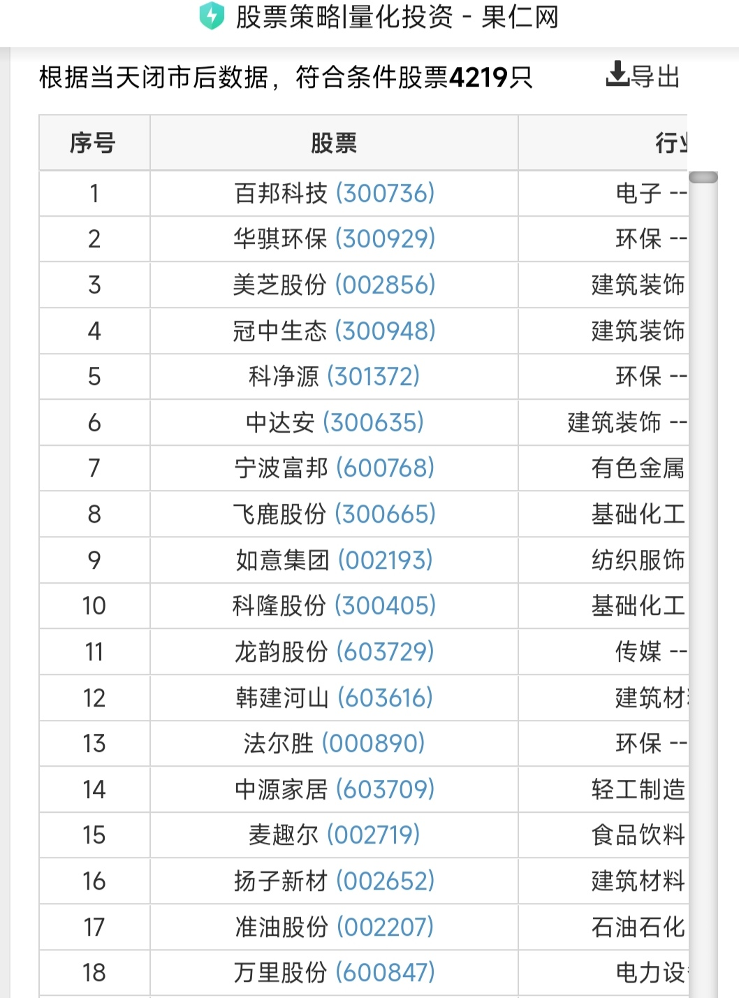 楼主要选18只,可以先选前30只个股。