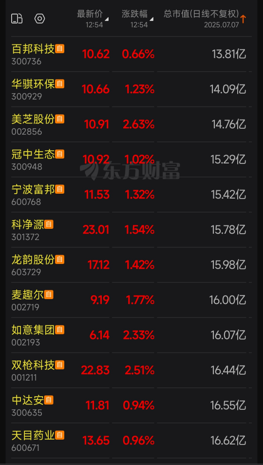 这样可以实时看最新的小市值排名。但是偶尔会有bug,自己看一下个股的总市值是不是太过离谱。