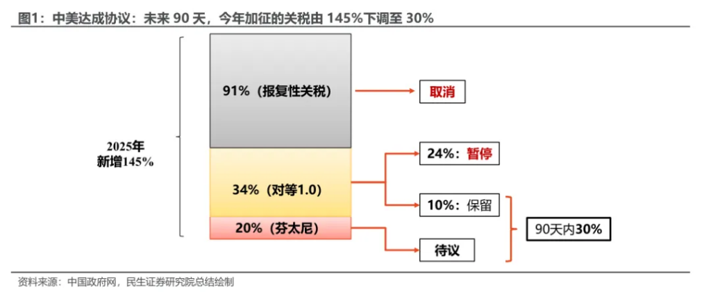 取消了两波后征收的关税,以及90天内暂缓24%的关税,最终应该是征收30%吧。