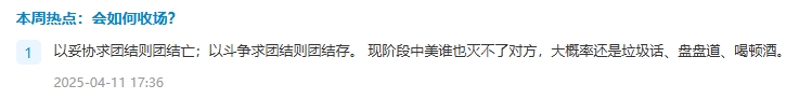 美国对其他所有国家征10%的关税,这是美债危机和美国经济结构决定的,不可能撤下来。未来,按贝森特的说法,美国会用关税保护几个战略产业,即半导体、造船、医药、钢铝、汽车等,其他的产业不需要保护,其关税属于可以谈判的部分。说到底,关税是一国内政,所以结果就这样了。