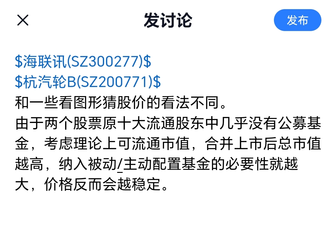 解读一下:杭汽轮B从B股市场转板到A股,同时带了一个拖油瓶,法人股在没有支付对价的情况下,全流通。也可以把海联讯的30%当做全流通的对价。