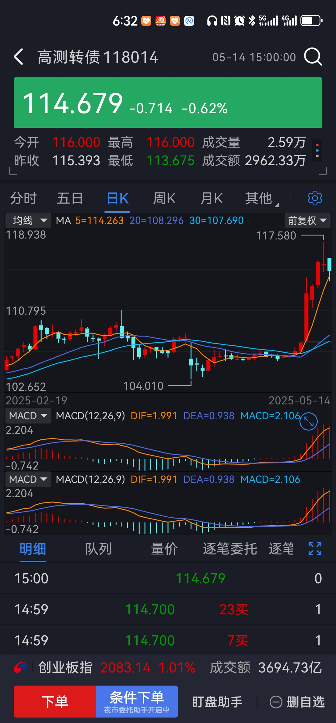 转债指数2174,中位数121.5,中位数溢价率31.31%,温度67.95°,均处于偏高位置,均离前期高点仅2%,个人也已被迫连续净卖出多日了,计划等调整时把近期卖出的仓位补回...