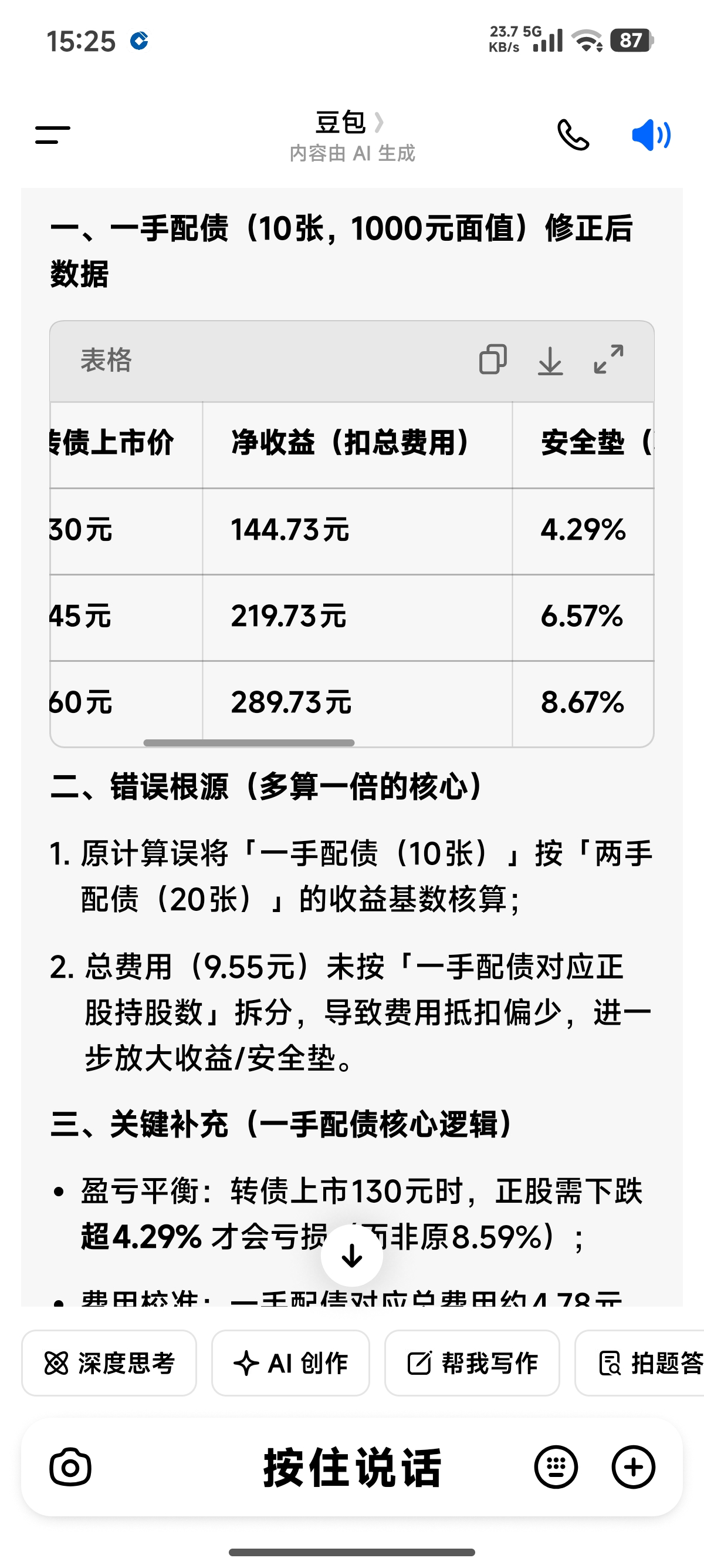 学艺不精,第一次配债失误应该被埋了,昨天没有仔细算,太相信豆包昨天它算错了一倍的安全垫,以后还是得自己算的安全垫才靠谱