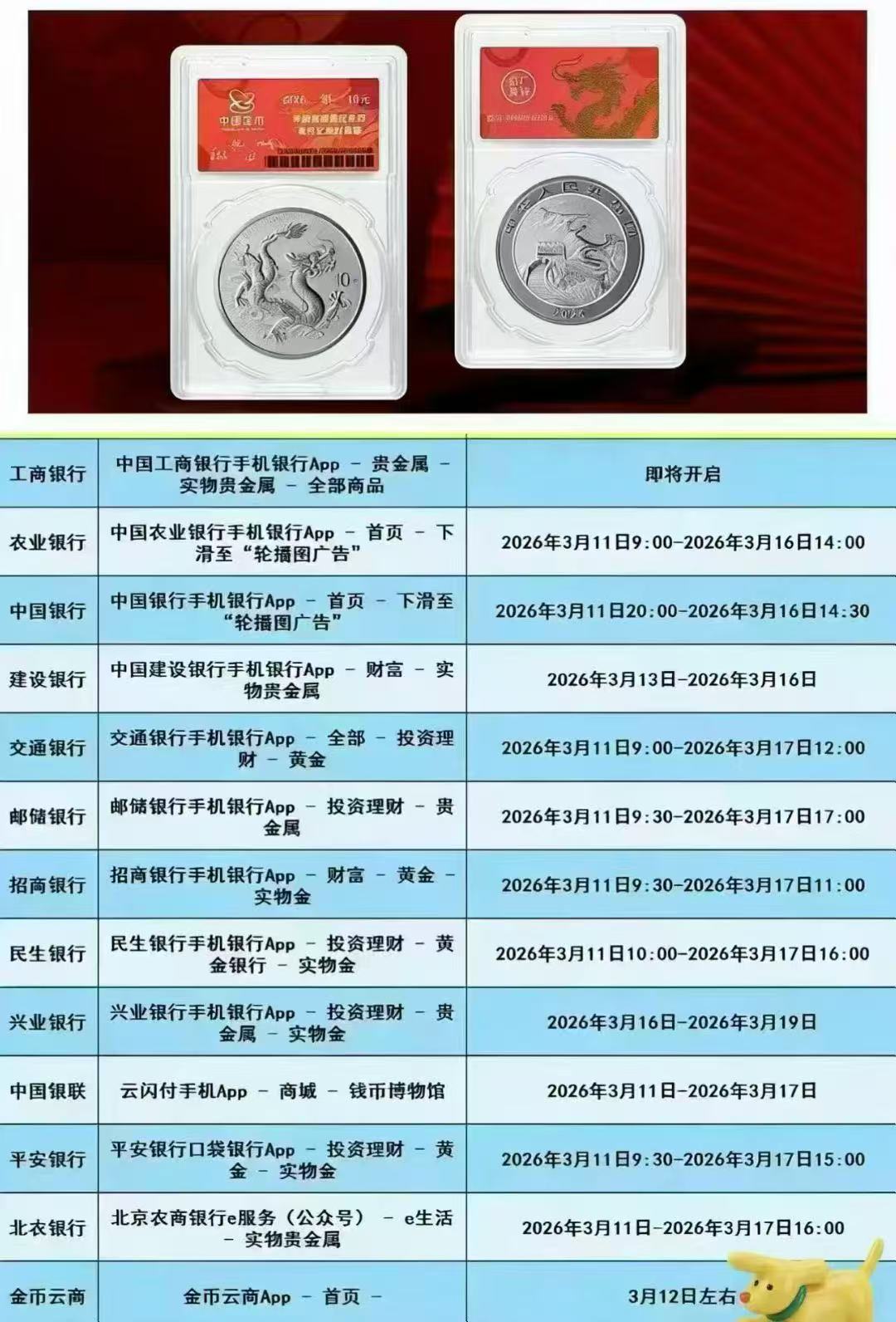 农业银行:预约2025年5月16日9:00至5月23日14:00,每人限预约1枚。