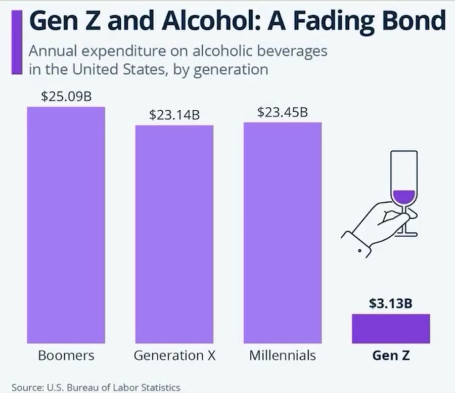 对的,美国Z世代,或说互联网社交媒体一代,酒类消费金额也是骤降的。关于驳Z世代消费金额骤减这点:
