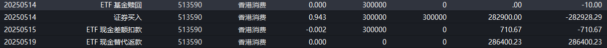 看来一下,13点到收盘,恒生指数大概涨了0.7%,那这个ETF持仓也是上涨的,具体涨多少不知道,楼主在折价0.4%开仓赎回能盈利0.9%,绝大部分收益来源于开仓到收盘这段时间标的净值的上涨,没有对冲赚这个钱靠的是运气