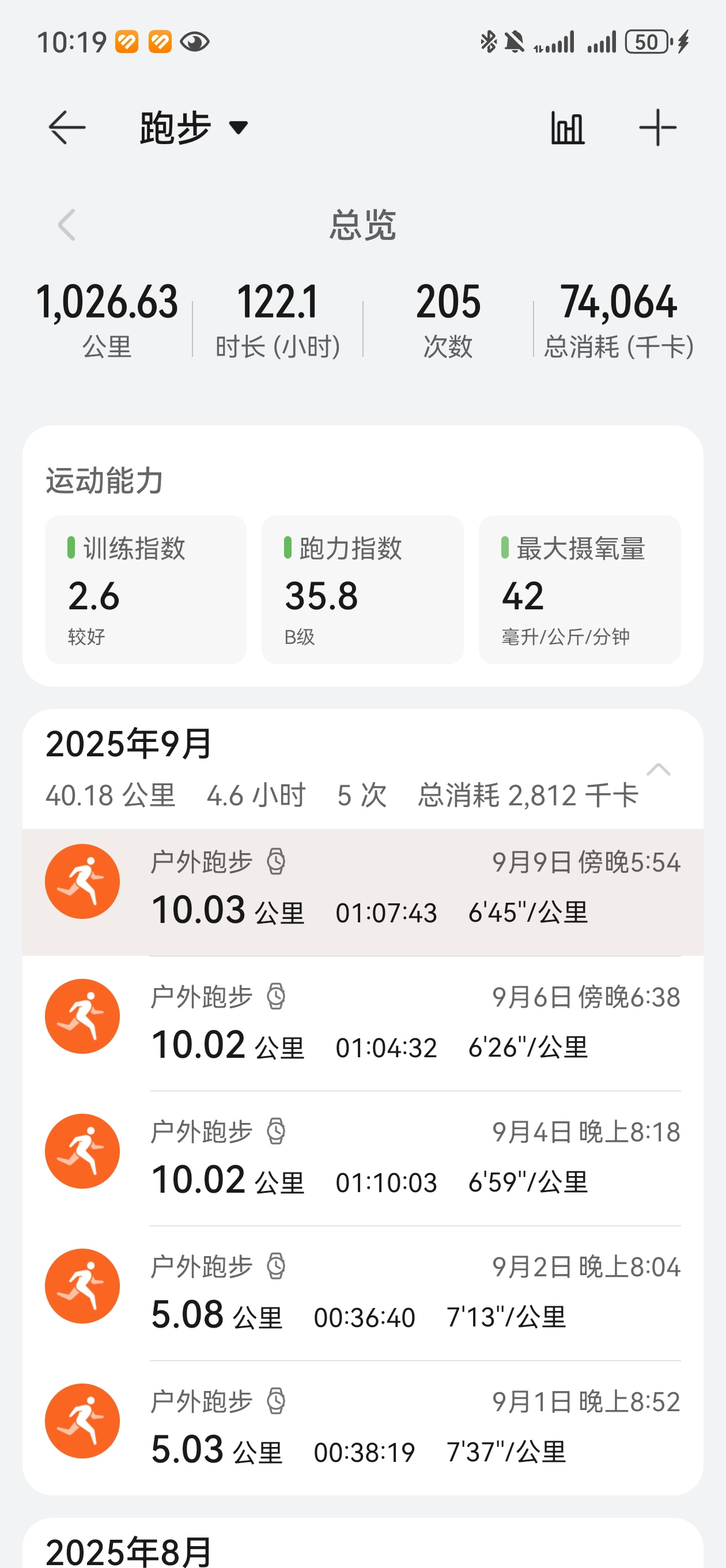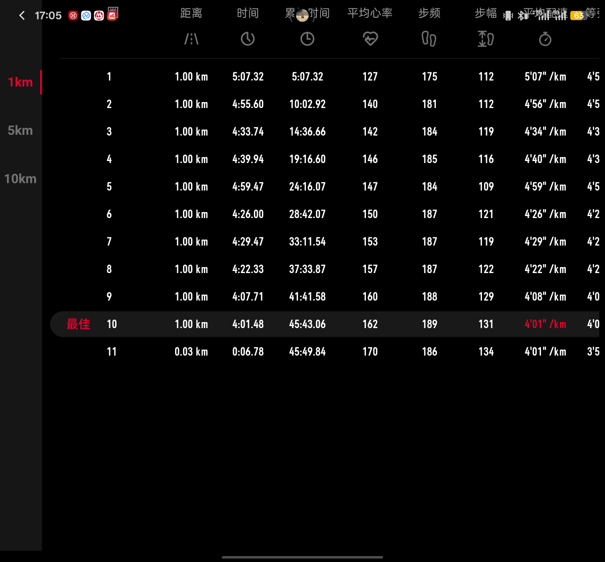今天10公里加了点步频,周末计划马配30+,看看能不能完成