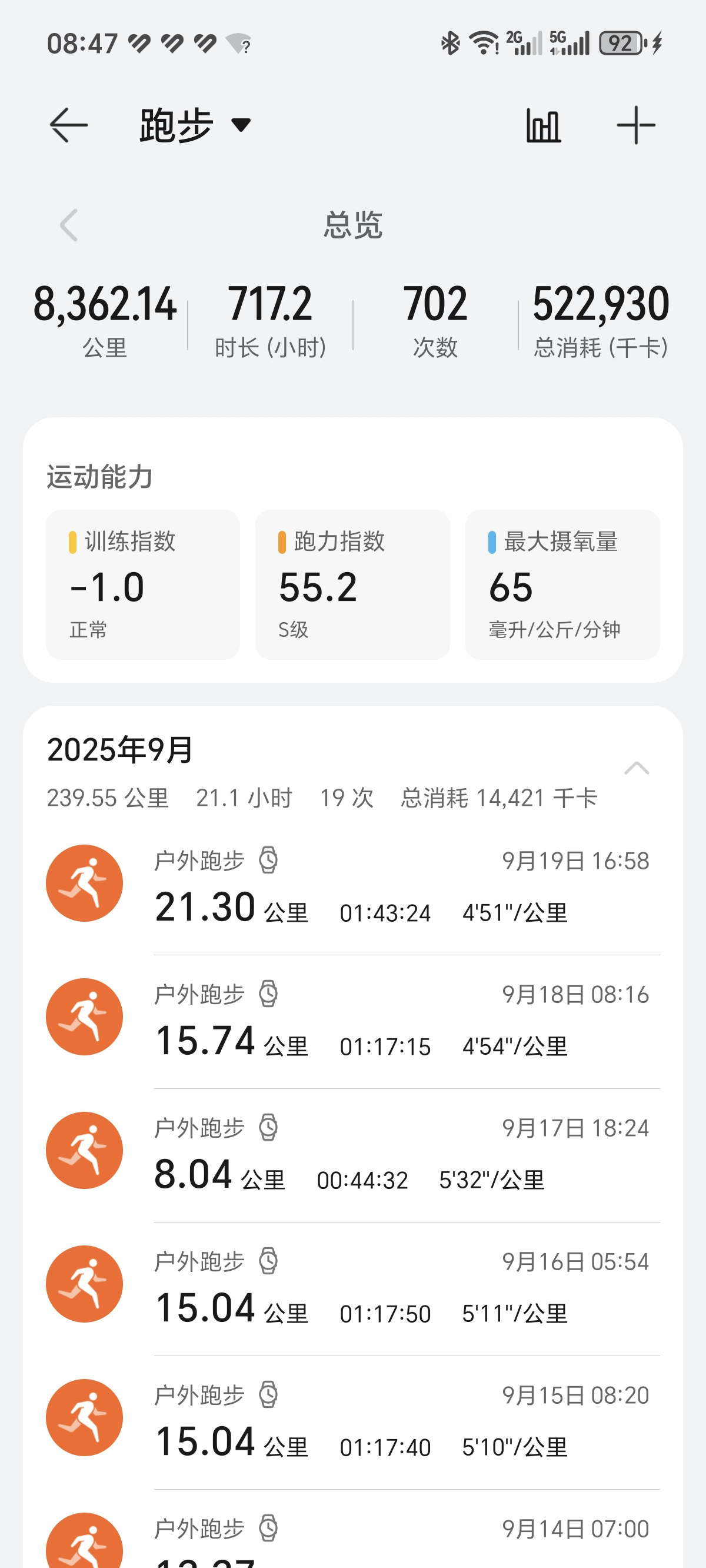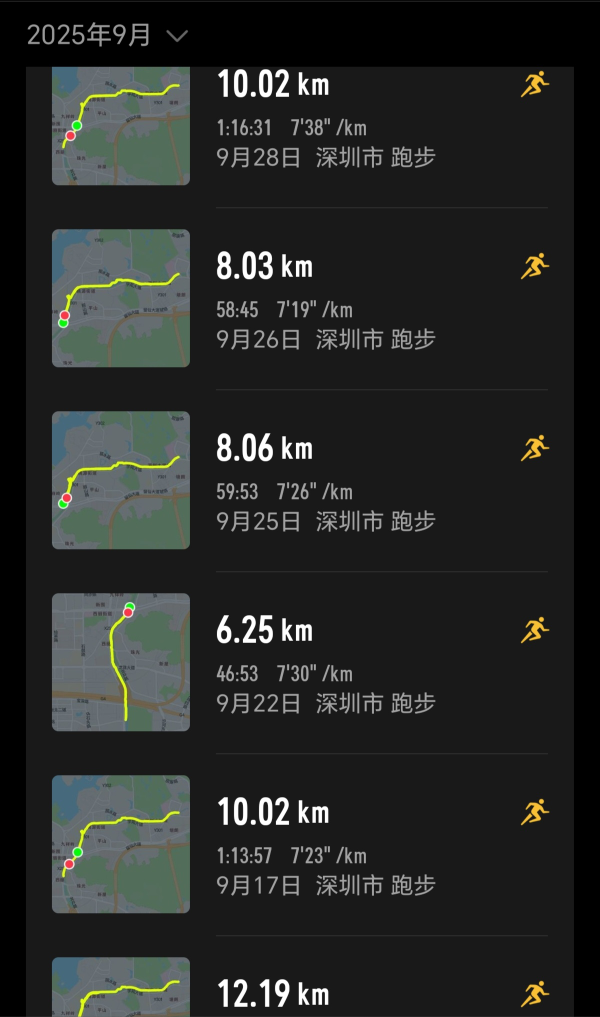 每天5公里,偶尔10公里,主打健康跑,已坚持9个月,半马还没尝试过。