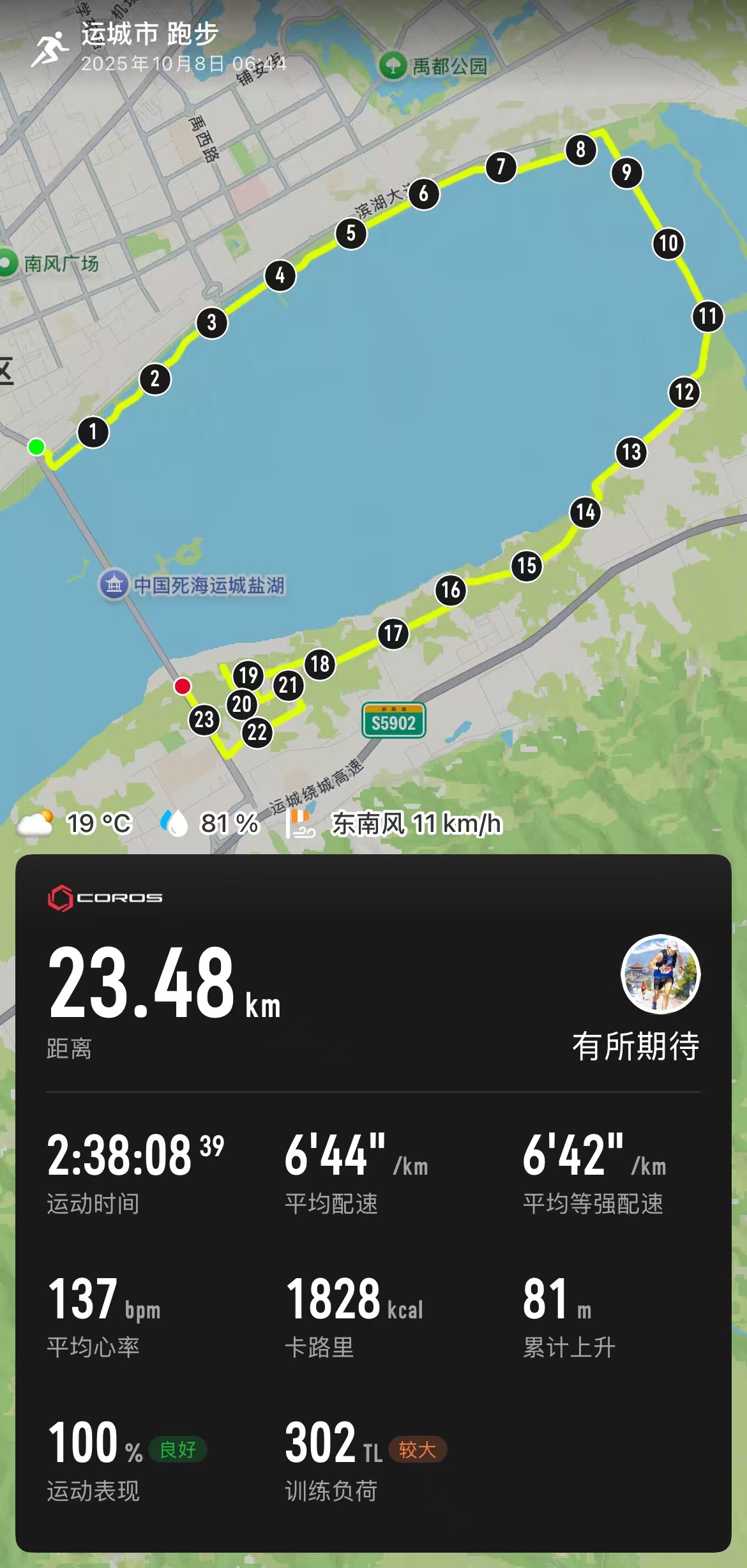 前天返程途中去了运城玩,昨天早上在运城盐湖沿湖跑了一圈,现在各个城市的城市绿道修的都很好,风景优美,跑步圣地。今年五月份去昆明出差,沿滇池跑了半圈,风景更美,去每个城市跑个步打个卡,跑步旅游的形式也挺美的,有去这两个城市玩的,需要跑步路线的私我啊。