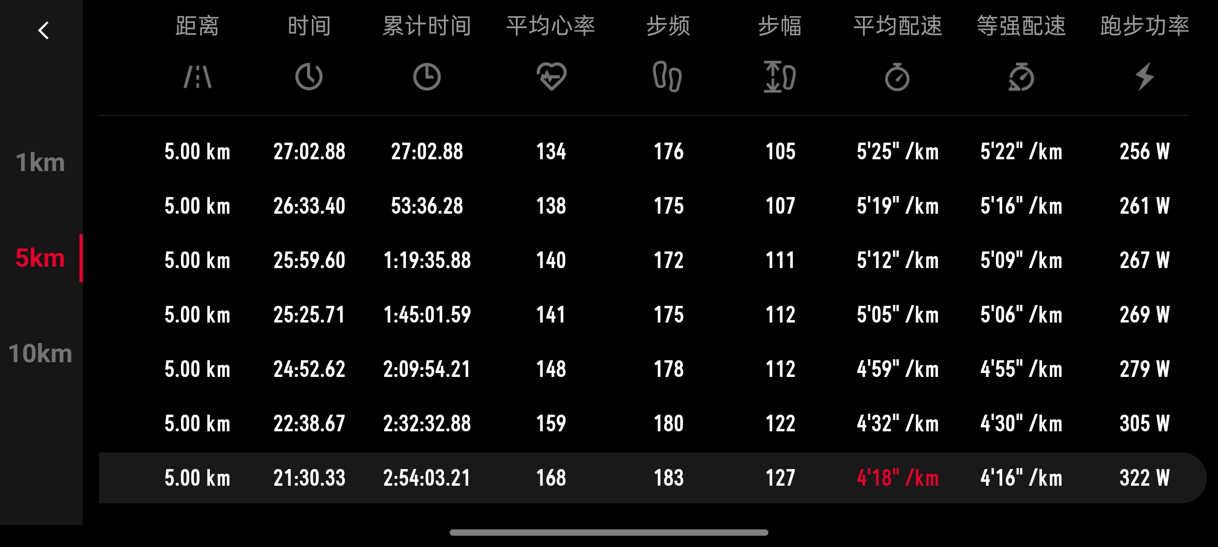 步频提不上去,下肢力量感觉不行,心肺能力也支撑不了再快的速度。也试过刻意把步频提到185左右,感觉腿酸的很快