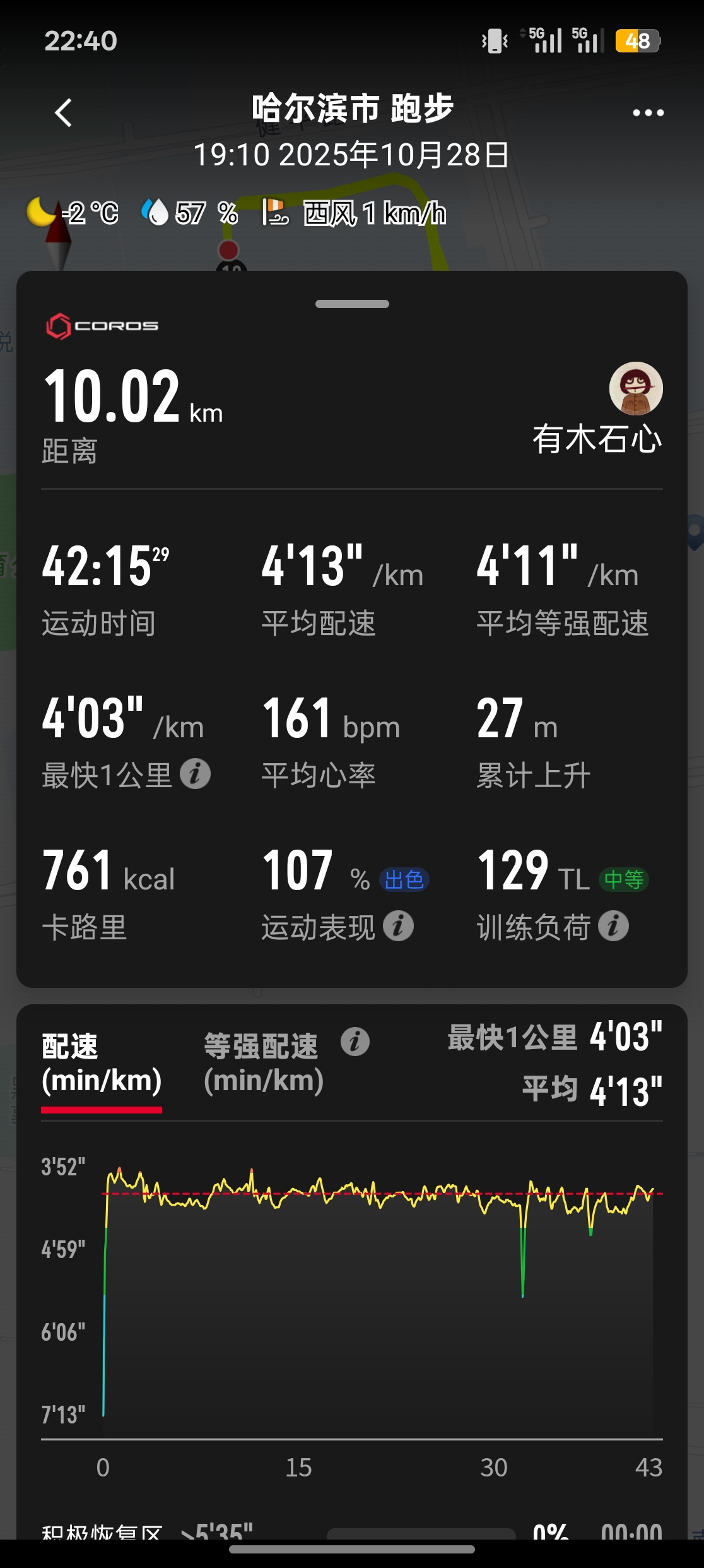 压着415配速跑,心率体感还可以,中午温度也有4度,调整状态,剑指长荡湖!