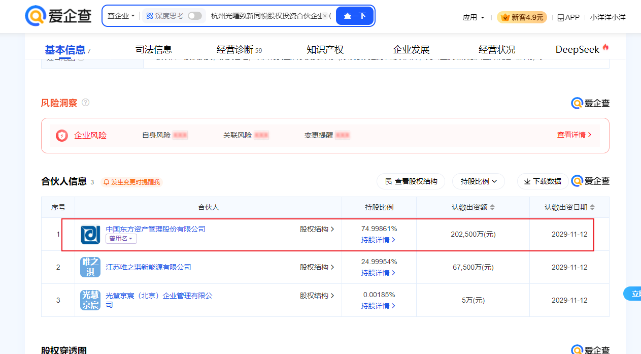根据杭州光曜致新同悦股权投资合伙企业(有限合伙) 穿透背后为中国东方资产管理股份有限公司。