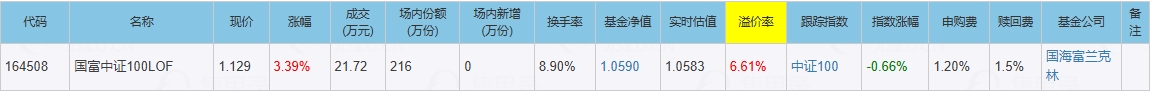 如题,164508溢价6.6%,但是这个基金场内只有200多万份,今天只成交了20多万。
