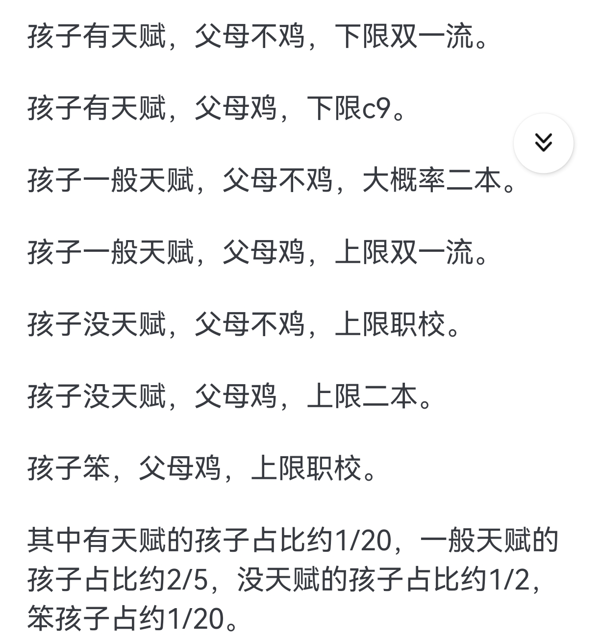我觉得看娃,娃想卷就助力。娃不想卷差不多弄弄就行了,反正工业化社会饿不死人,挣再多都是三顿饭一张床,开布加迪该堵车还是堵车。