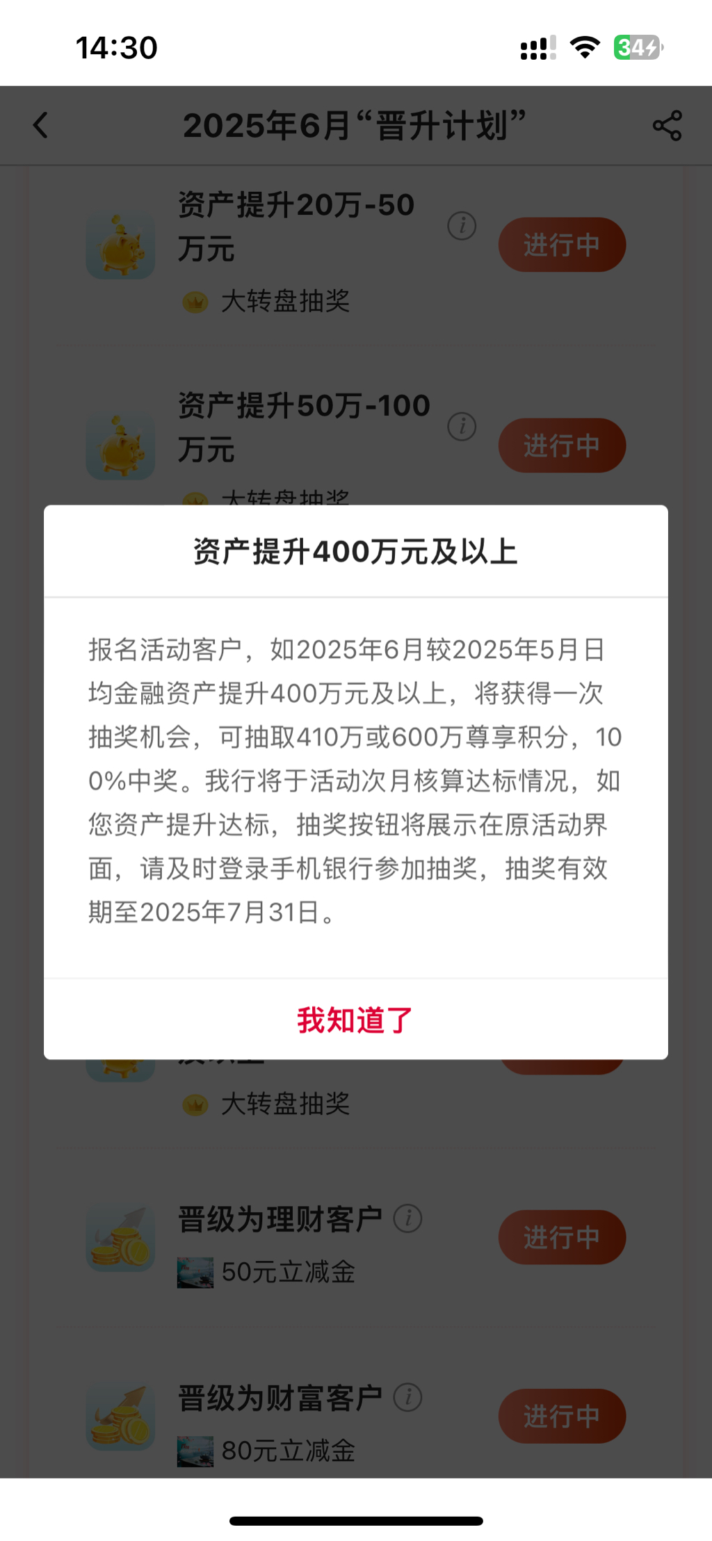有参加中行晋升活动的大佬们吗?想请问一下这个资产晋升活动是算头还是算尾呀?比如说6月30号入金,7月1号出金,算6月的还是算7月的月日均?