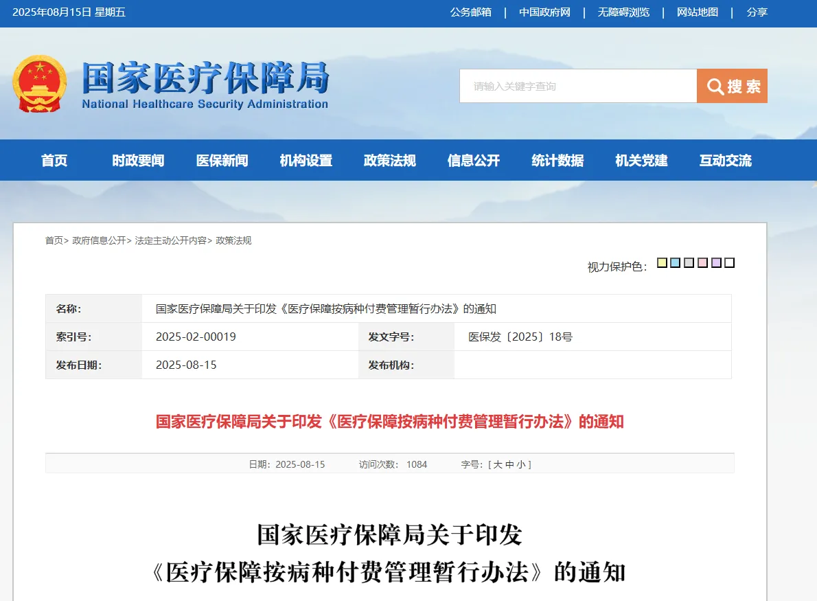8月15日,国家医疗保障局官网印发了《医疗保障按病种付费管理暂行办法》的通知,通知明确,为推进按病种付费为主的多元复合式医保支付方式改革,规范按病种付费管理,建立全国统一、上下联动、内外协同、标准规范、管用高效的医保支付机制,赋能医疗机构高质量发展,制定该管理办法。