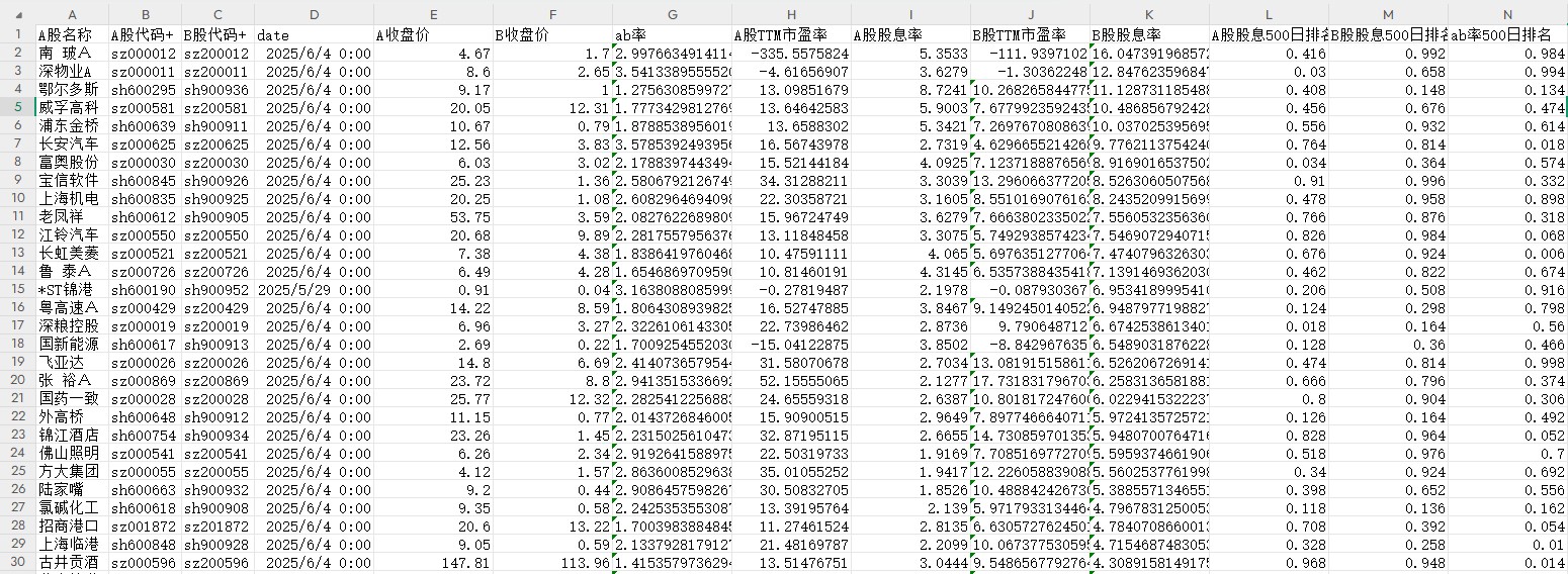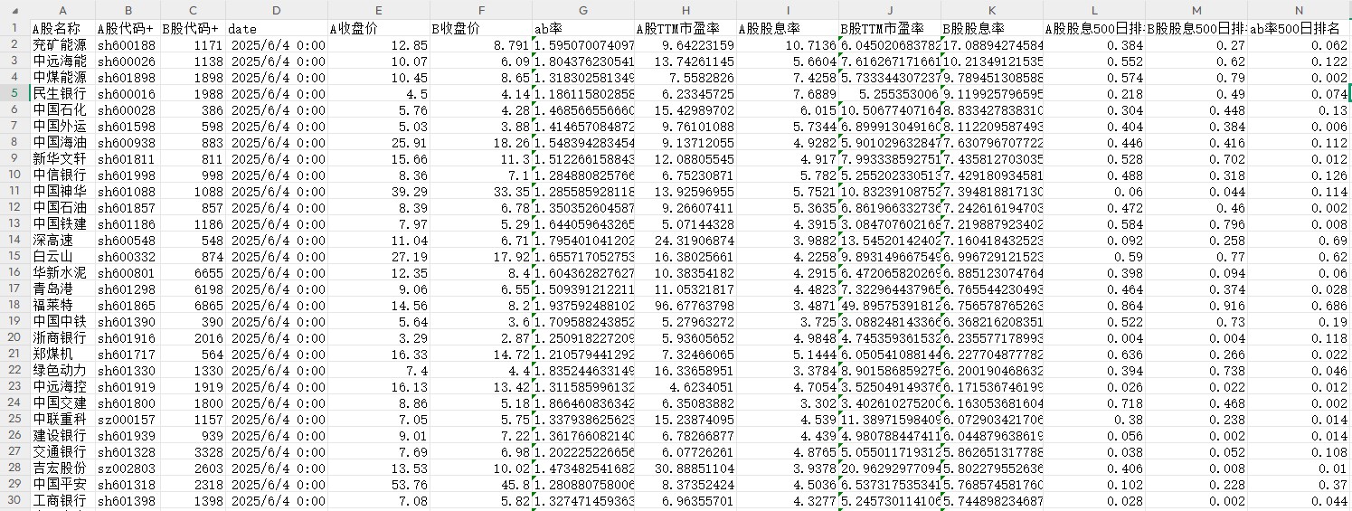 最近对价值投资感兴趣,尝试导出了ab股,ah股息率相关数据。数据过长,只展示前30名。