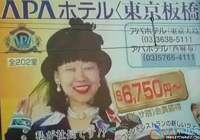 除此之外,APA酒店的一大特色是使用且仅使用酒店的老板娘为形象代言人,其尊荣如图:
