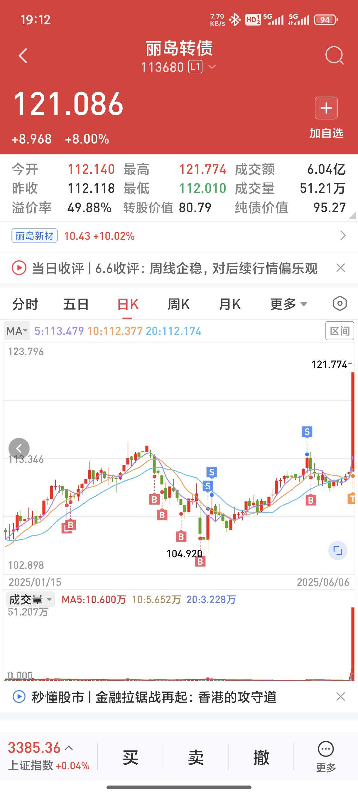 昨日平开高走,中幅盘升,今日计划 有T做T 无T减仓 。华翔 最后交易日 帝欧 实控人签署战略合作协议和一致行动协议,复盘 闻泰 锦鸡 减持股份 韵达 伟测 山石 不下修 正裕 华翔 转股1千万 南银 转股1.4亿 杭银 转股2.7亿 法兰 转股2千万 利民 转股2.5 宏昌 志特 转股0.7千万 今日 无 最快差一天满足可能强赎, 今日 最快差一天满足可能触发下修。